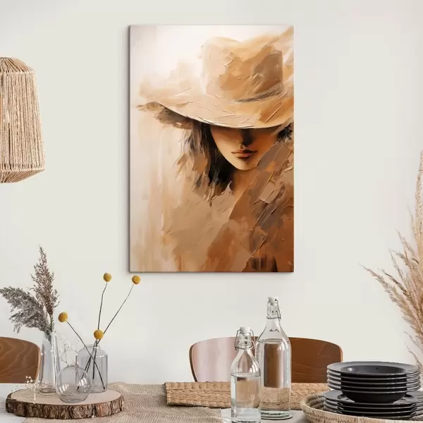Cuadros Mujer con sombrero pintada con pinceladas cálidas y texturizadas. Nr s47315