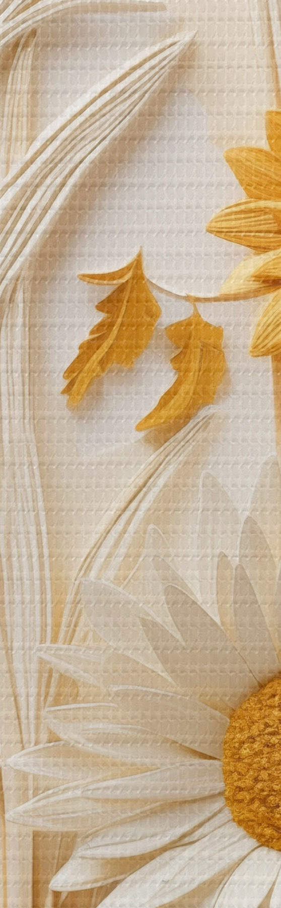 murales de pared Una colección texturizada de margaritas amarillas y blancas con hierbas secas y ramitas de lavanda sobre un fondo blanco. s47430