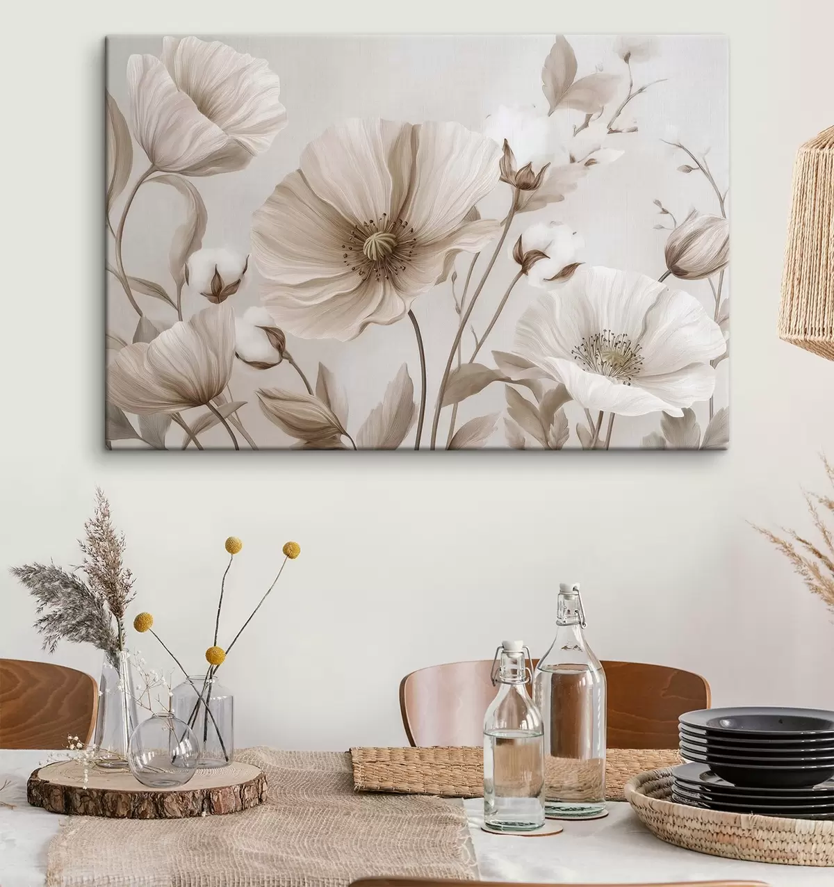 Hay tres tipos de material disponibles para pedidos: Lienzo Económico - material denso y duradero para impresión digital, idéntico al lienzo de pintor, superficie impermeable, reproducción realista de los detalles, material de grano medio. Lienzo Premium - la textura se asemeja a la de un lienzo de pintor (pequeños hilos entrelazados). Reproducción suave y detallada de la imagen sobre una superficie mate. Eco-Premium - tejido 100% algodón de alta calidad. Gracias a las fibras naturales de algodón, el material es duradero y resistente al desgaste. Excelente reproducción del color y el detalle.