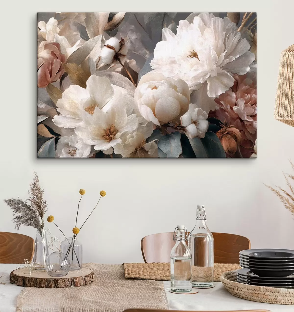 Hay tres tipos de material disponibles para pedidos: Lienzo Económico - material denso y duradero para impresión digital, idéntico al lienzo de pintor, superficie impermeable, reproducción realista de los detalles, material de grano medio. Lienzo Premium - la textura se asemeja a la de un lienzo de pintor (pequeños hilos entrelazados). Reproducción suave y detallada de la imagen sobre una superficie mate. Eco-Premium - tejido 100% algodón de alta calidad. Gracias a las fibras naturales de algodón, el material es duradero y resistente al desgaste. Excelente reproducción del color y el detalle.