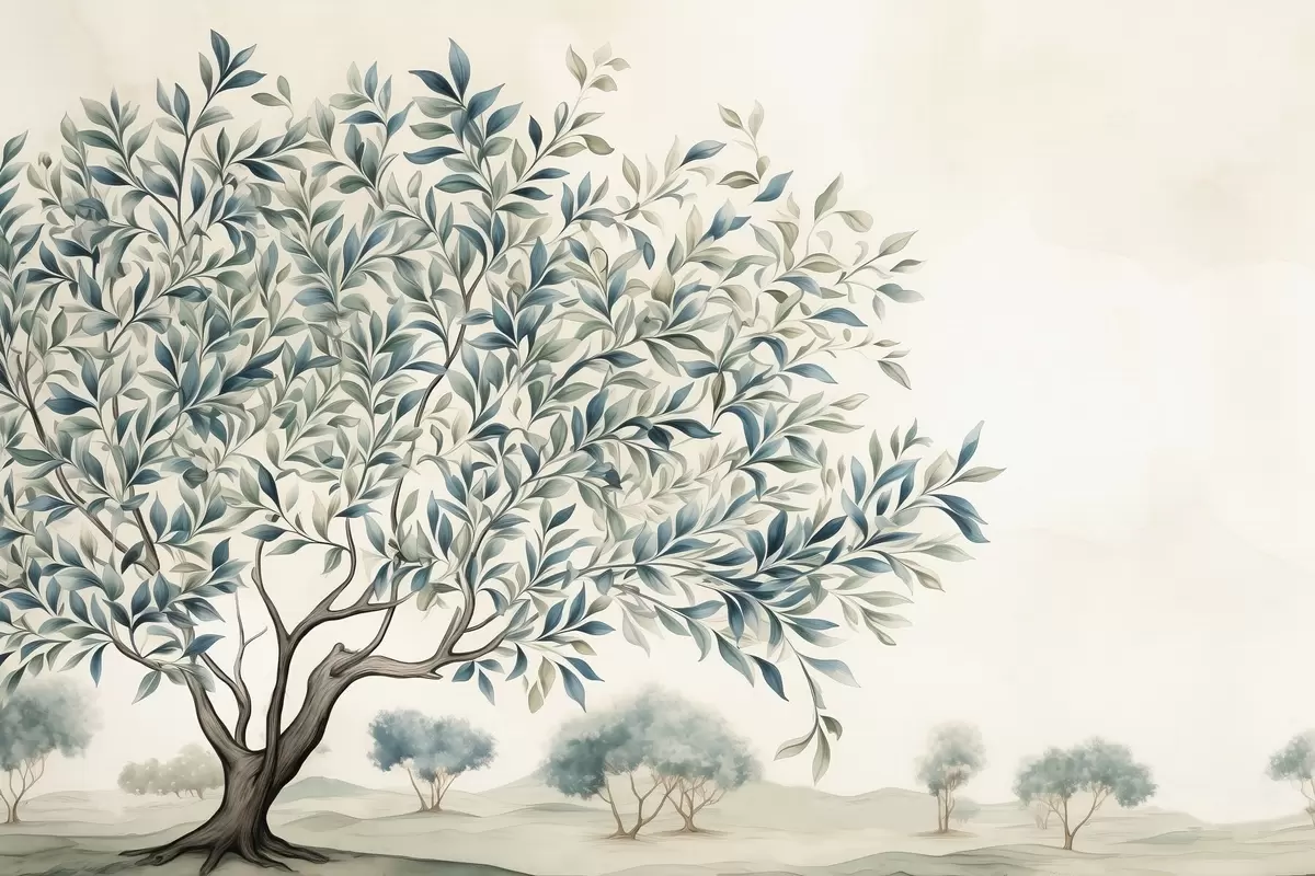 murales de pared Árbol en un campo, pintura en acuarela s47705