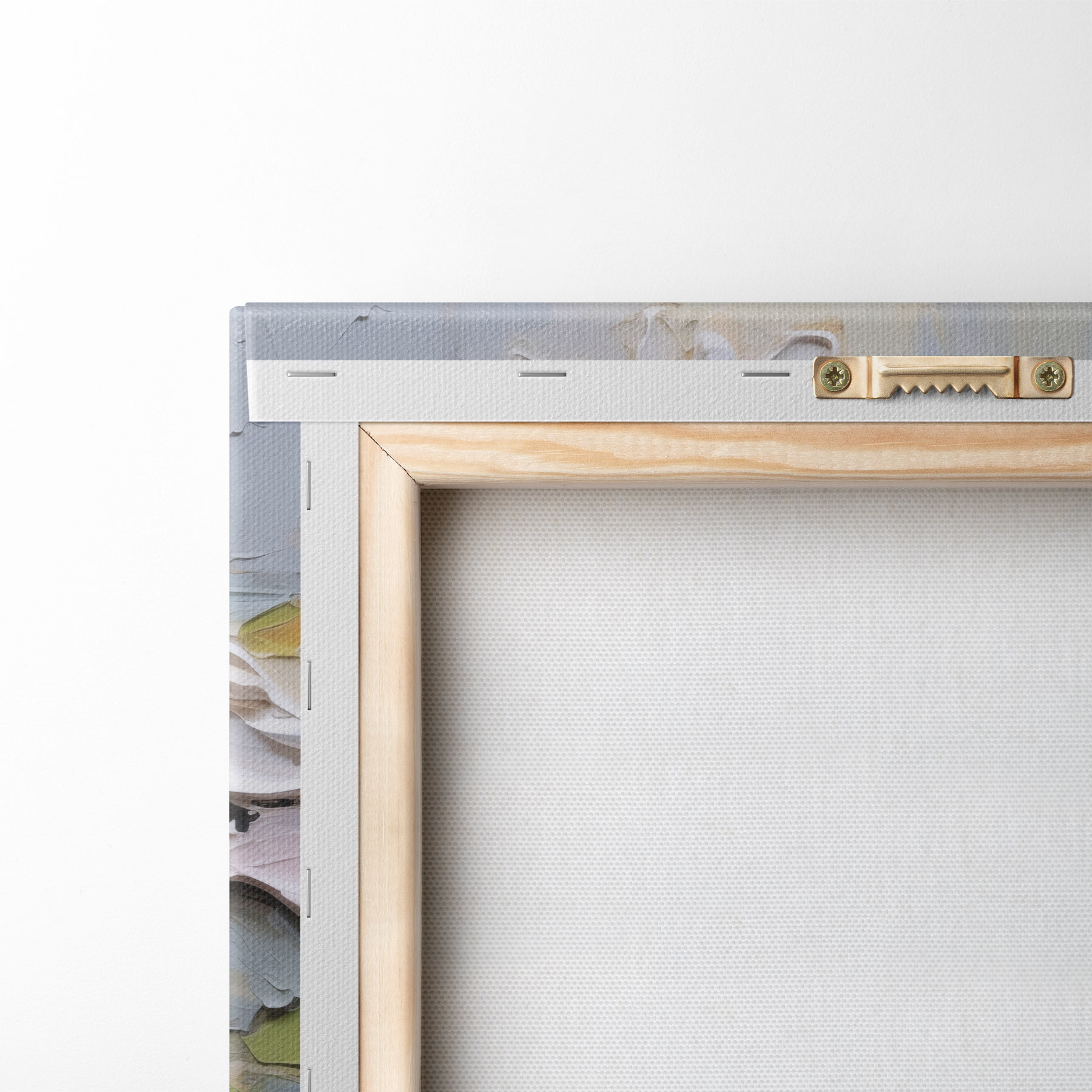 Vendemos cuadros en bastidor: se trata de un marco de madera sobre el que se extiende el lienzo. Este cuadro no necesita marco; puedes colgarlo directamente en la pared.
