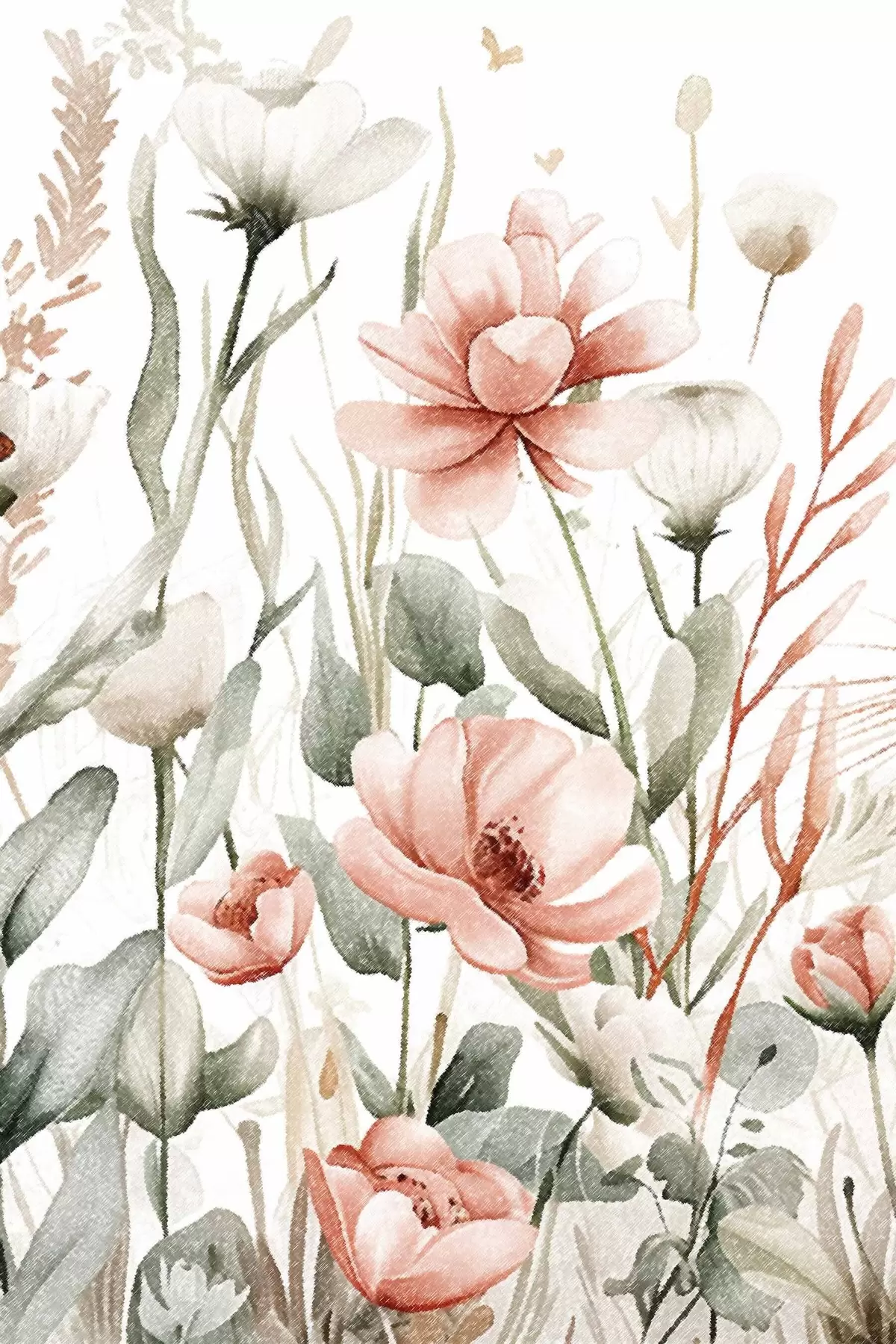 murales de pared Flores en acuarela, efecto lápiz s47740