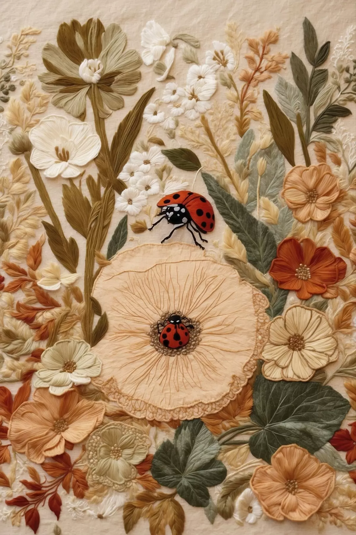 Cuadros Dos mariquitas entre flores suaves Nr s47758