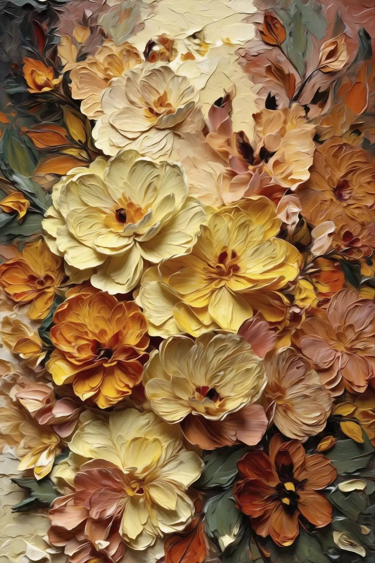 Cuadros Exuberante composición de flores vibrantes en tonos cálidos. Nr s47760