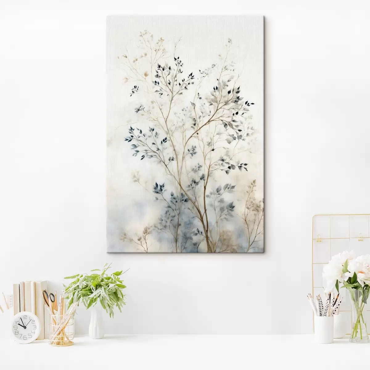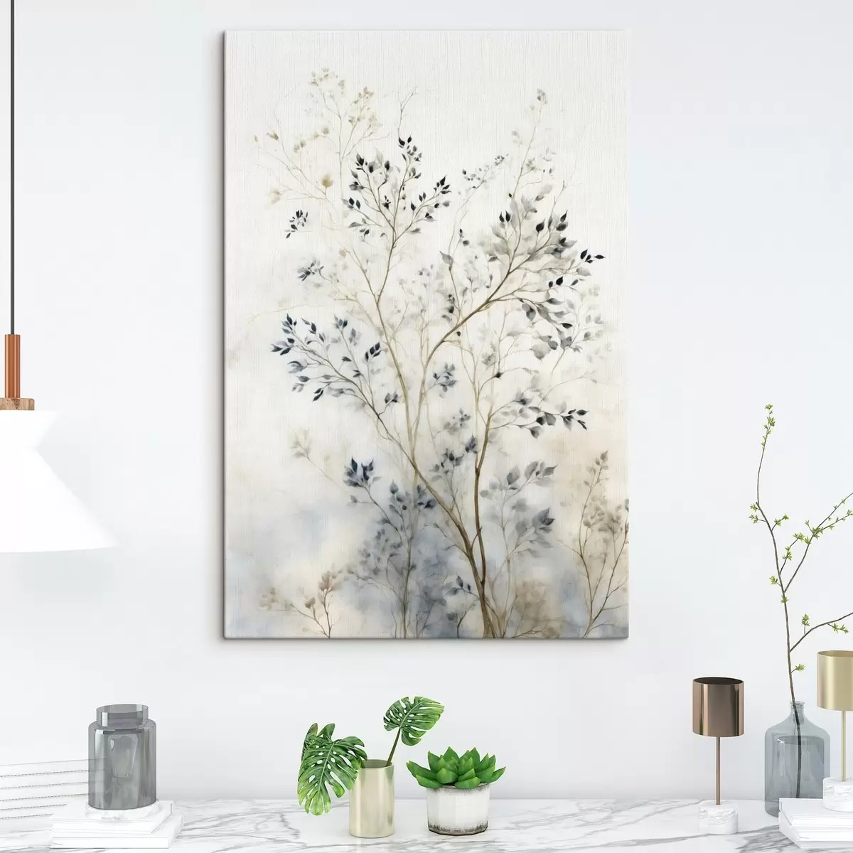Cuadros Ramas delicadas con hojas pequeñas sobre un fondo claro. Nr s47763