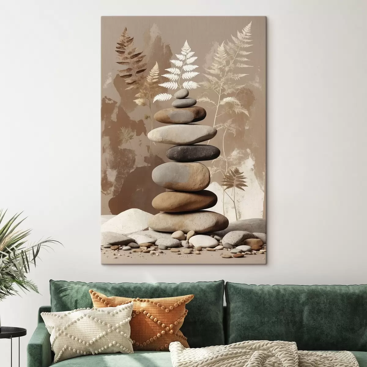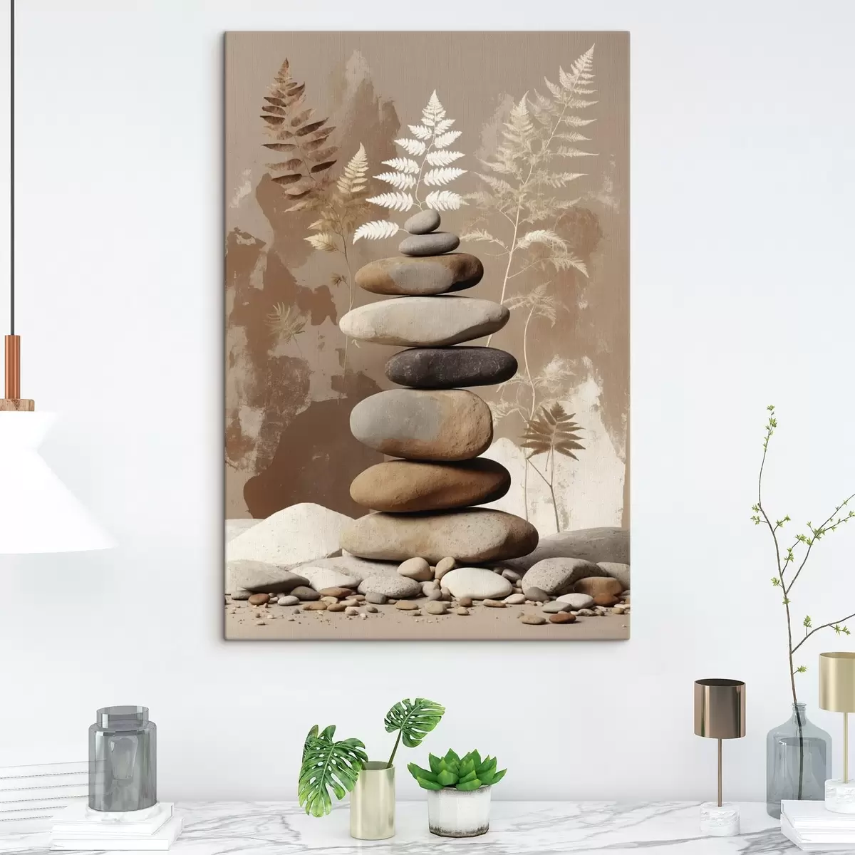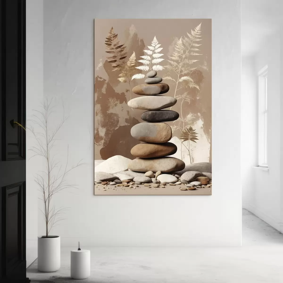 Cuadros Pila de piedras lisas con un fondo botánico Nr s47764