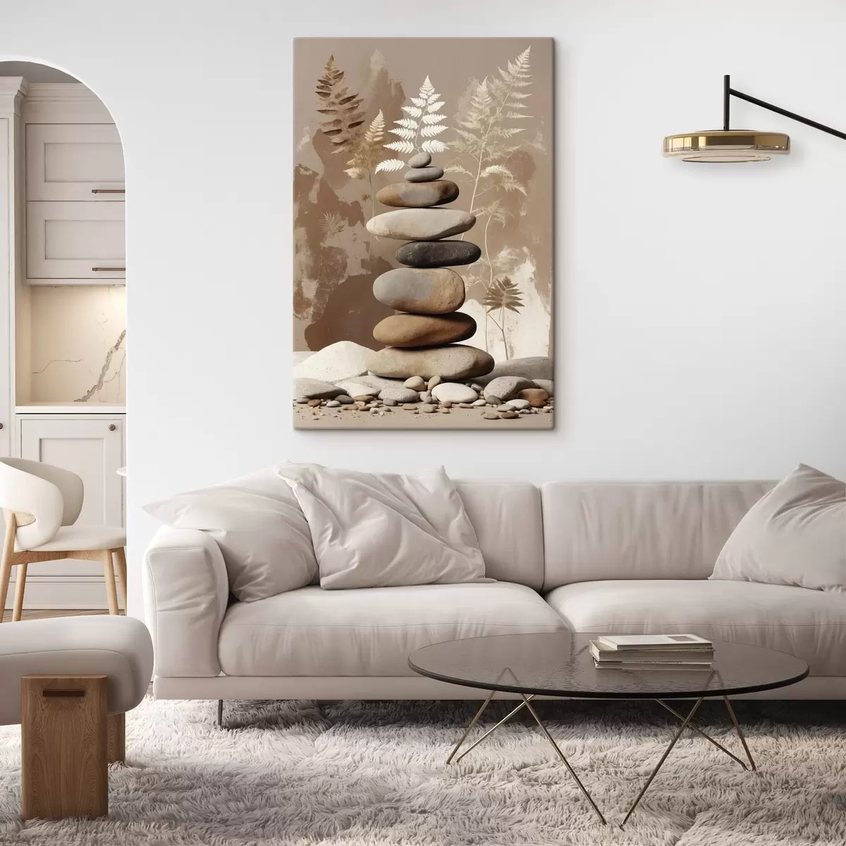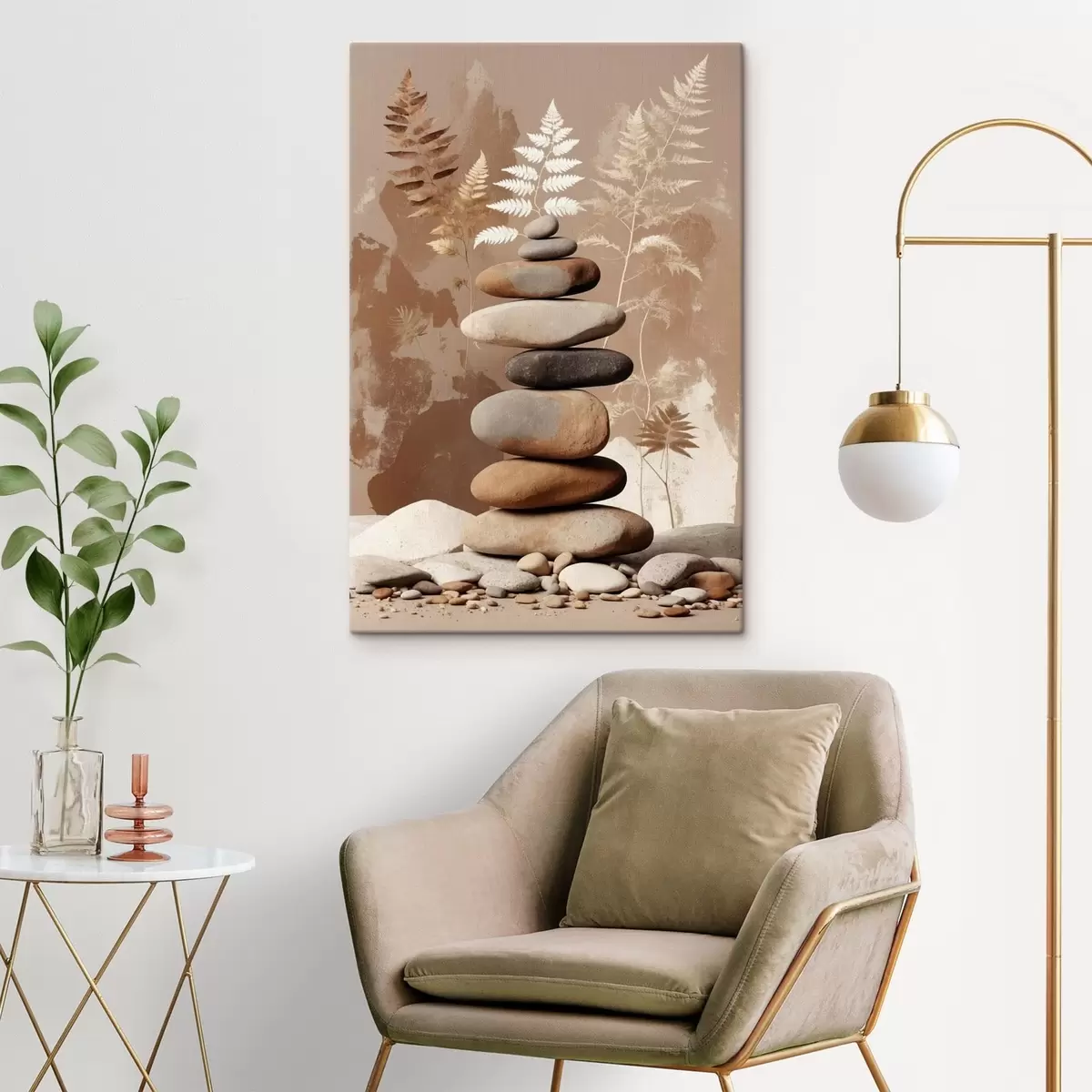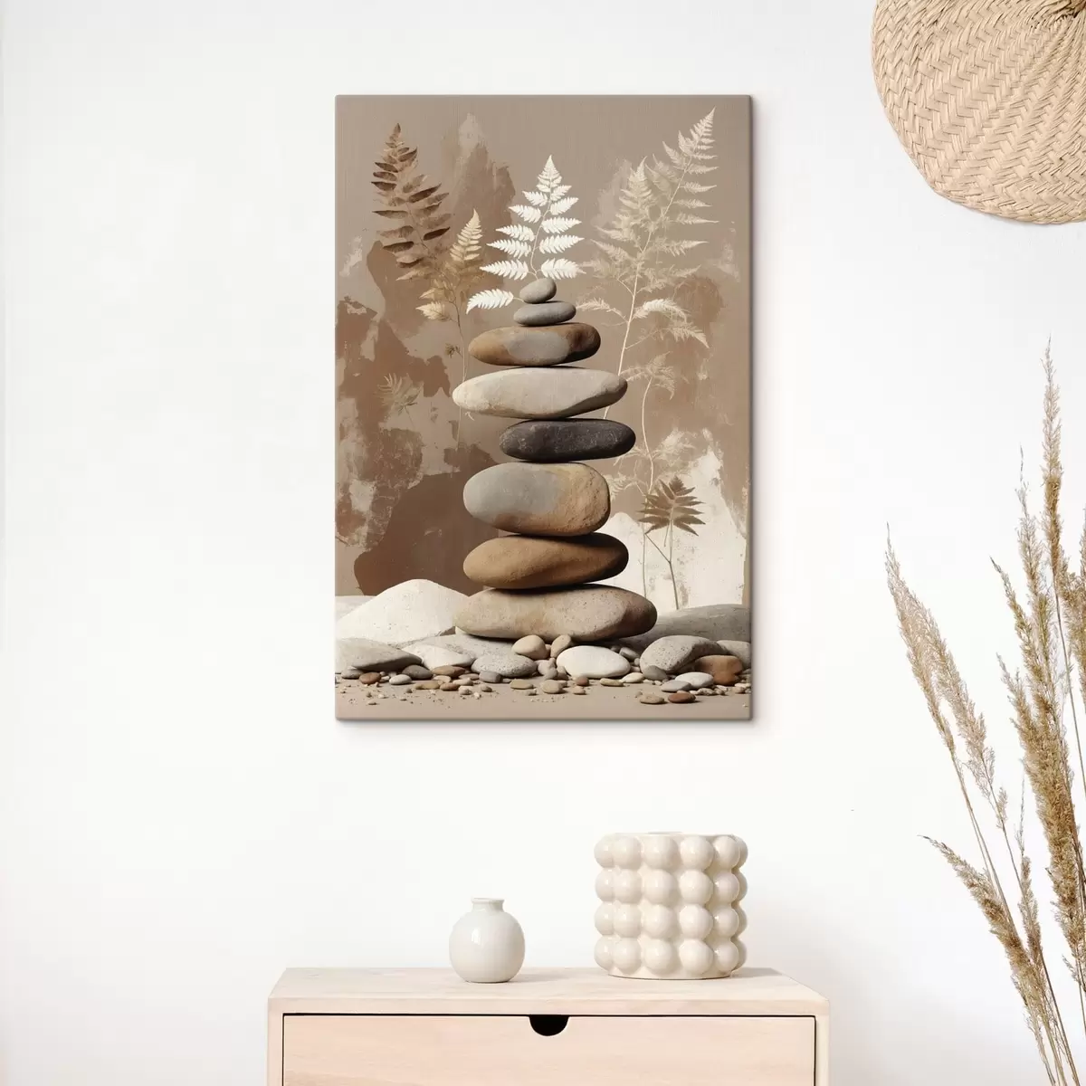 Cuadros Pila de piedras lisas con un fondo botánico Nr s47764