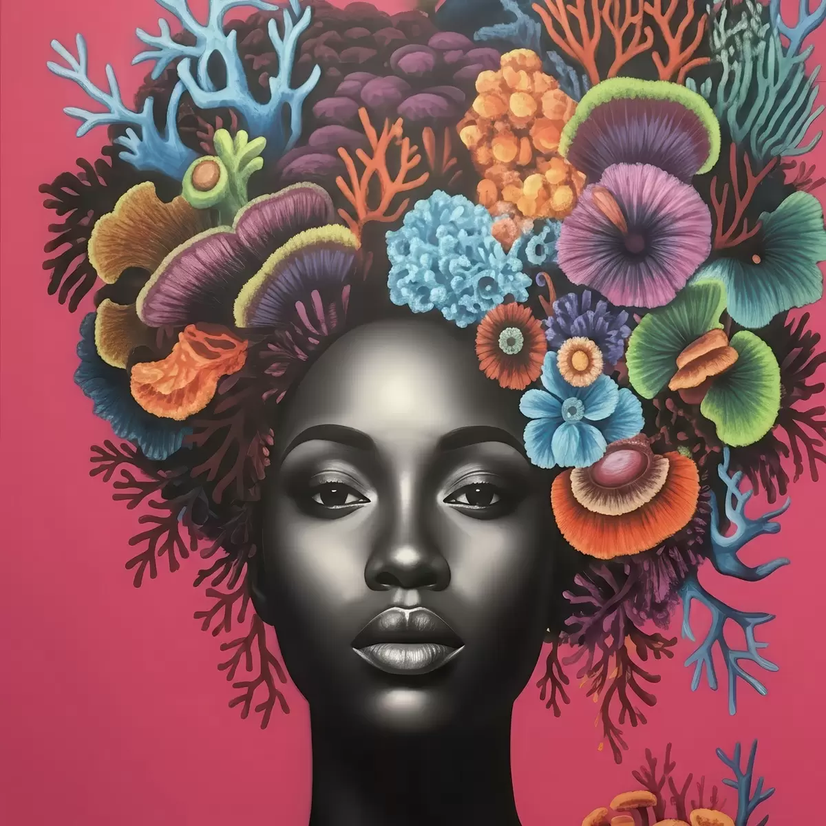 Cuadros Retrato psicodélico de una mujer con setas Nr s47786