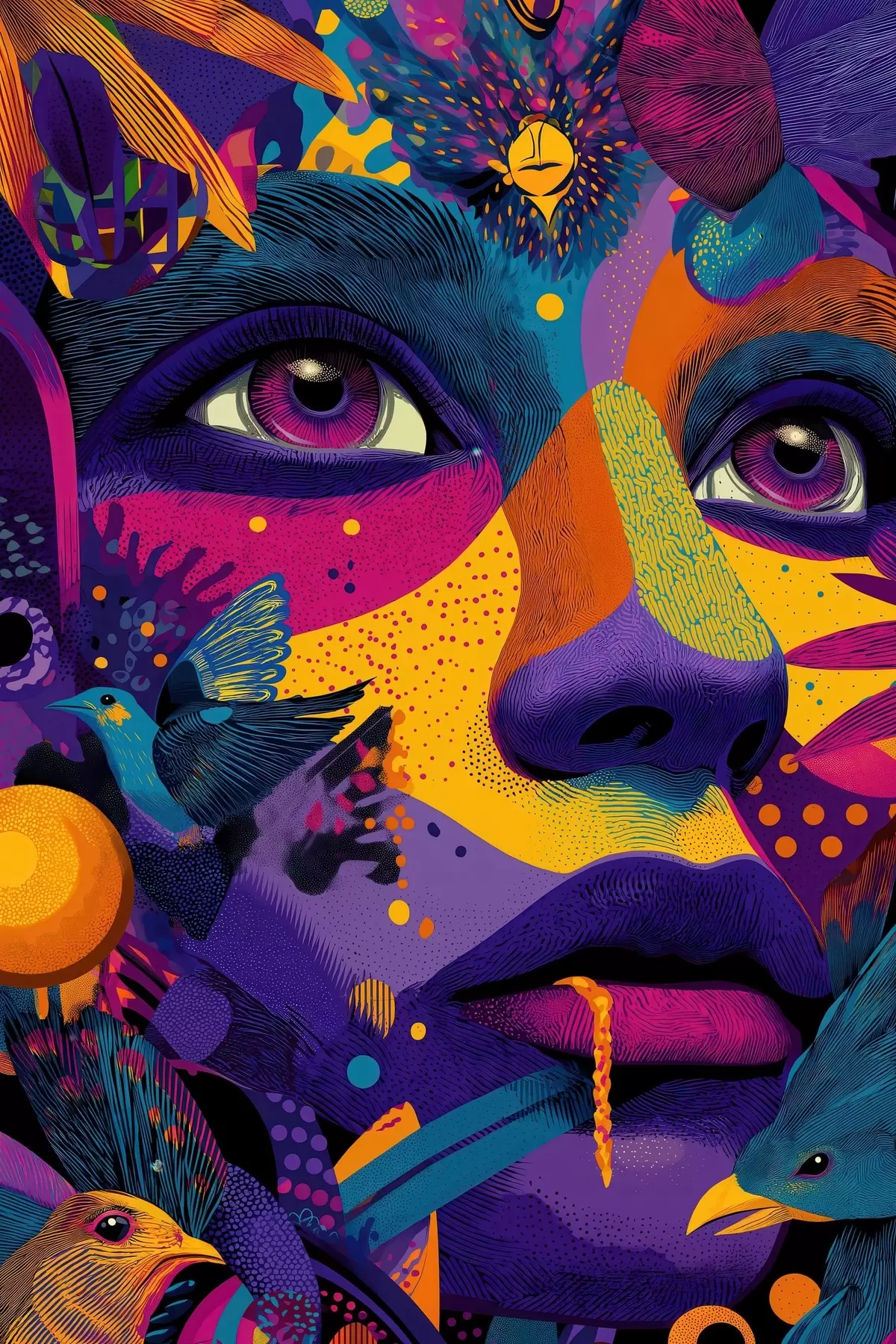 Cuadros Retrato psicodélico con pájaros Nr s47790