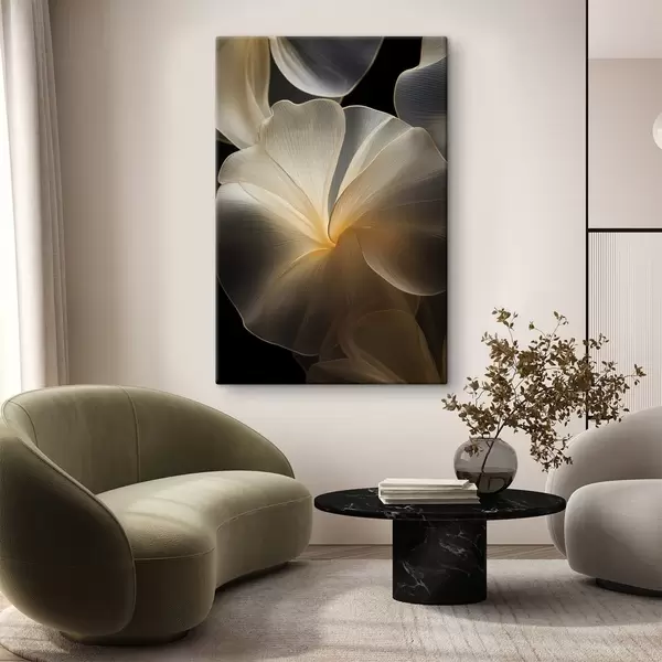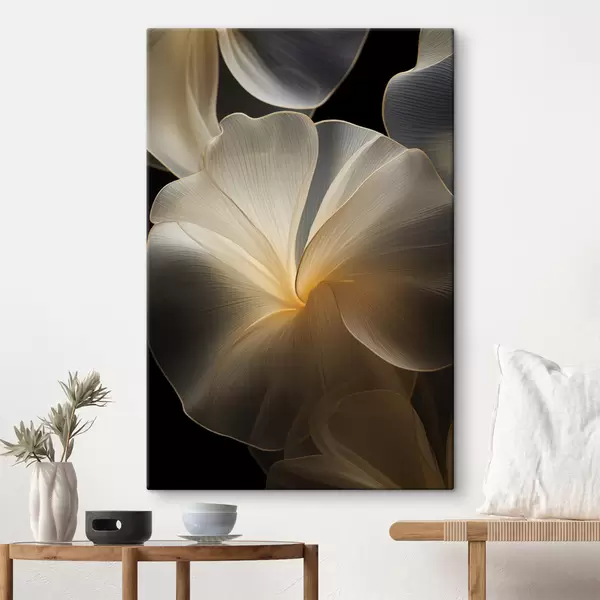 Cuadros Pétalos abstractos fluidos y translúcidos con líneas delicadas, sobre un fondo oscuro. Nr s47860