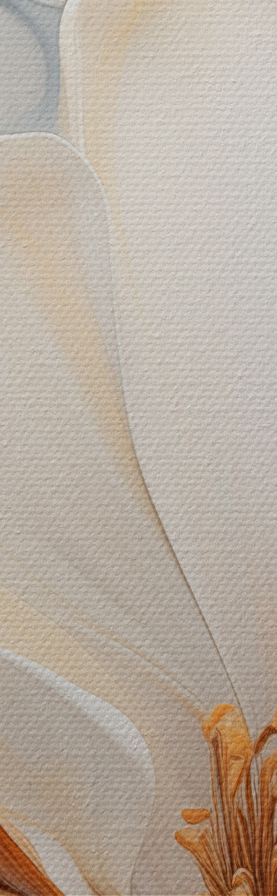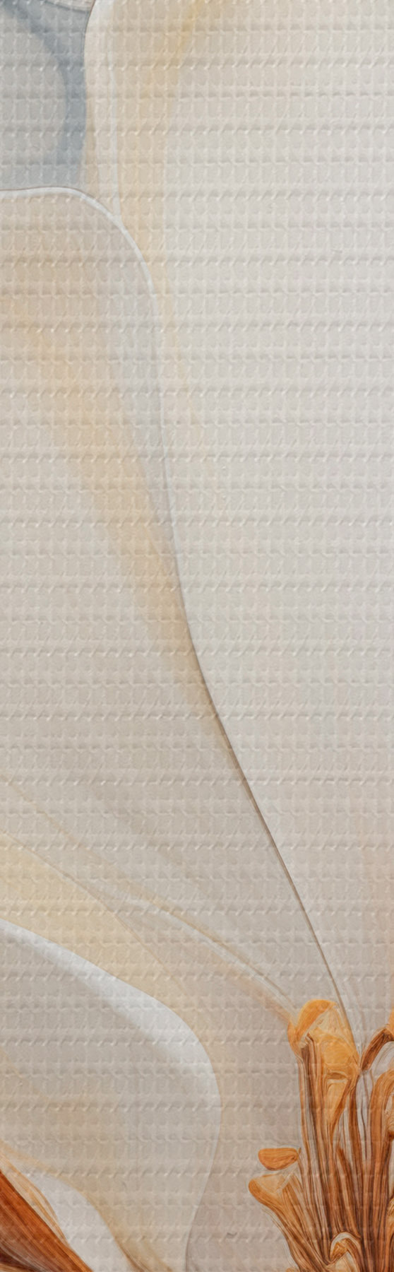 murales de pared Flor abstracta grande con pétalos blancos, naranjas y verde azulado, fondo texturizado. s47878