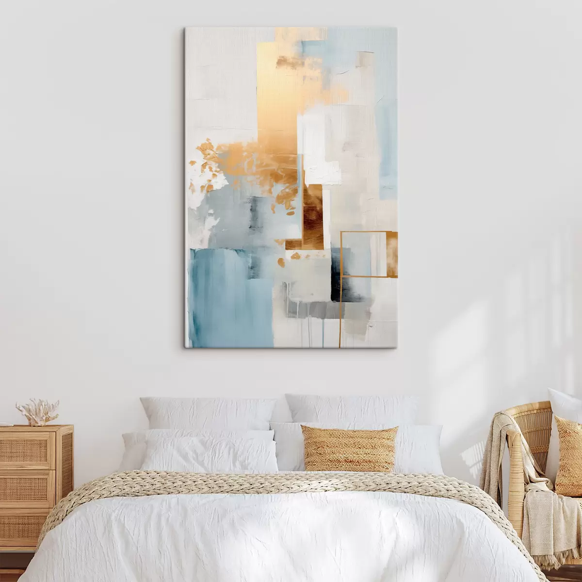 Cuadros Formas geométricas abstractas con colores amarillo, azul y blanco, composición texturizada y minimalista. Nr s47881