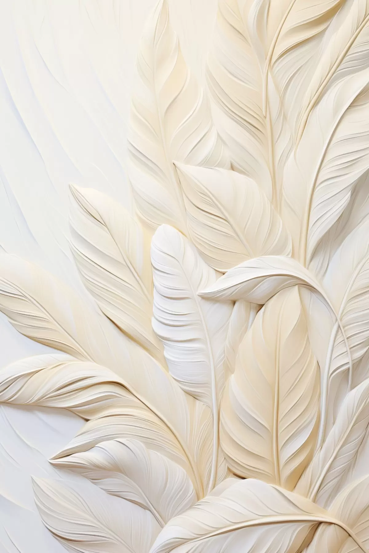 murales de pared Plumas de color crema superpuestas entre sí, con un fondo suave y claro. s47883