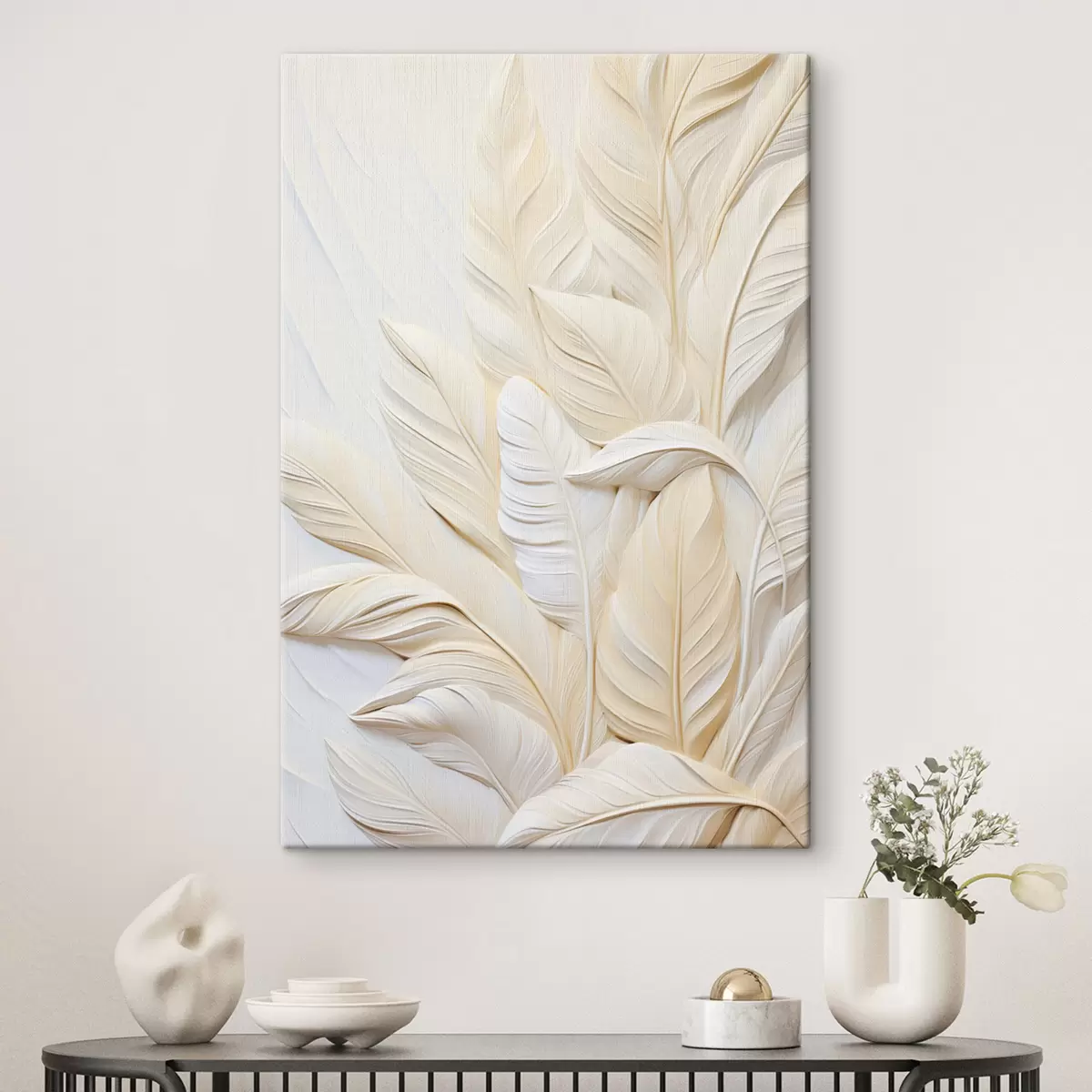 Cuadros Plumas de color crema superpuestas entre sí, con un fondo suave y claro. Nr s47883