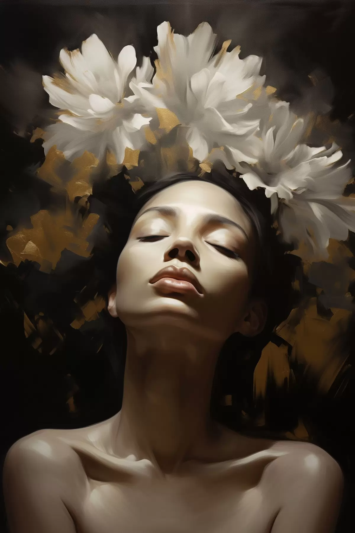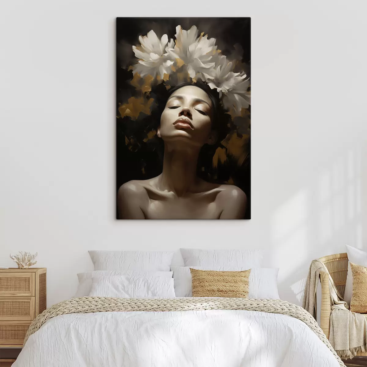 Cuadros Retrato femenino con flores blancas Nr s47918