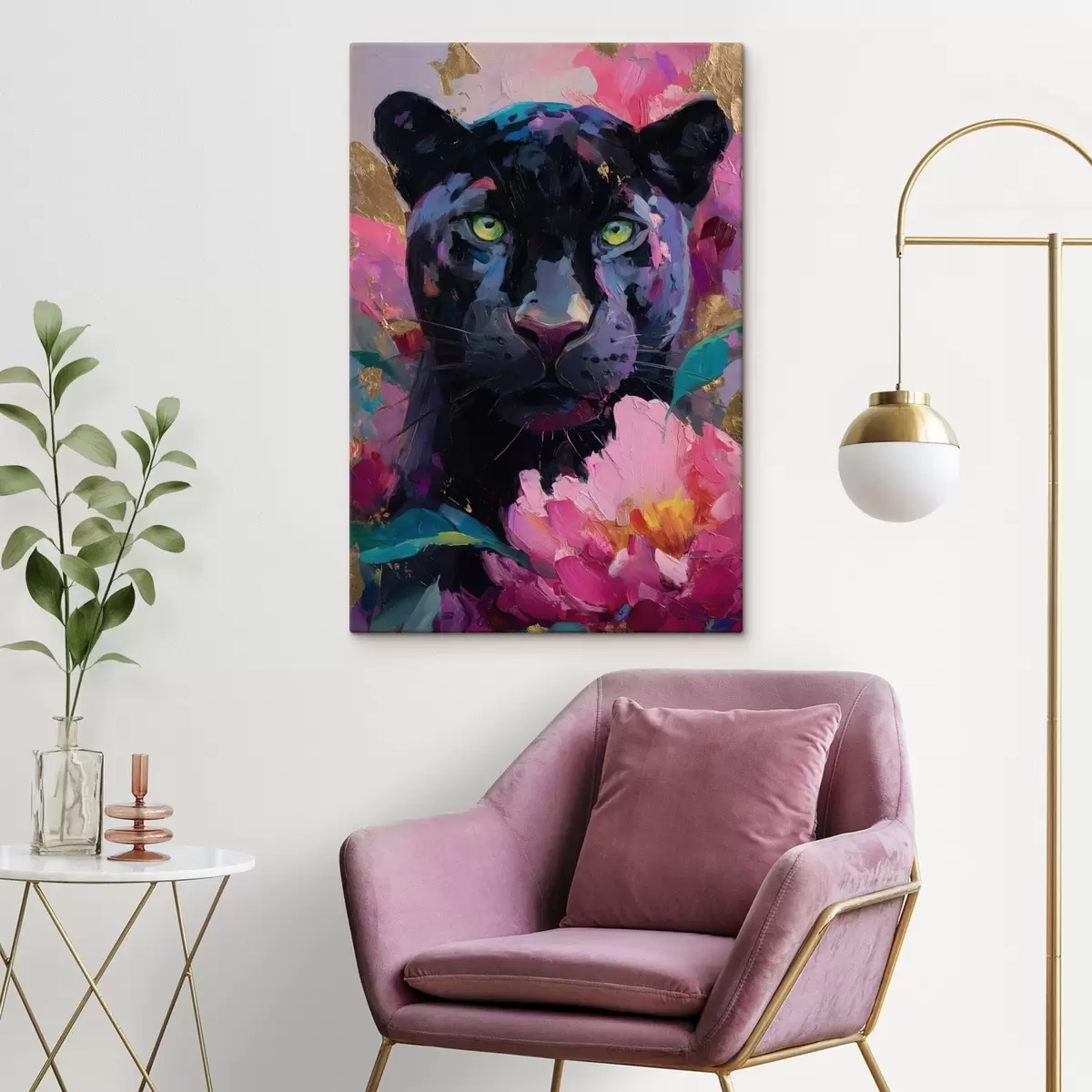 Cuadros pantera negra entre peonías Nr s47935