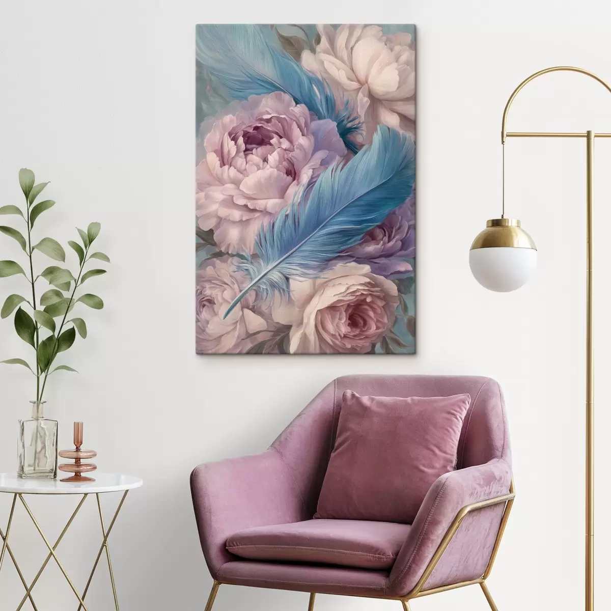 Cuadros plumas entre peonías Nr s47940