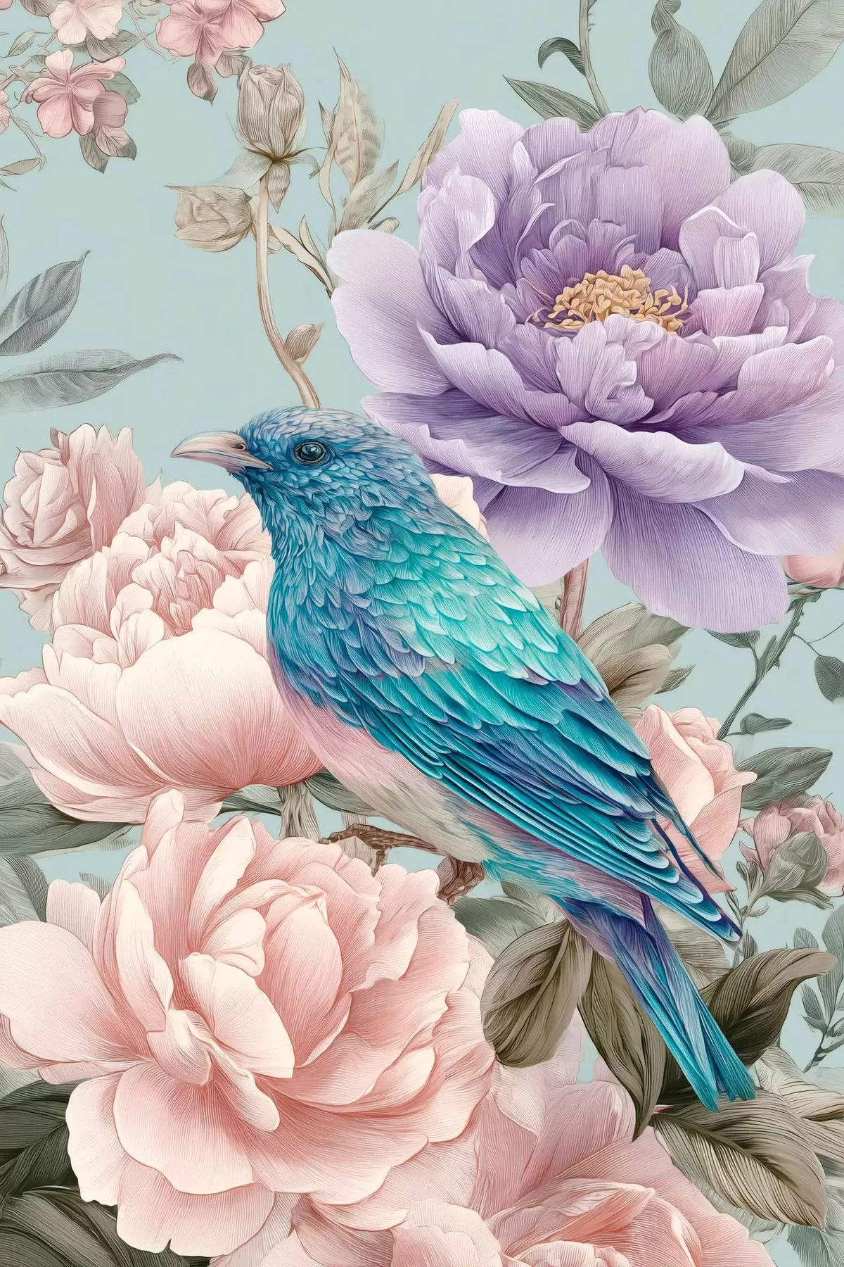 murales de pared pájaros cantando entre rosas s47944