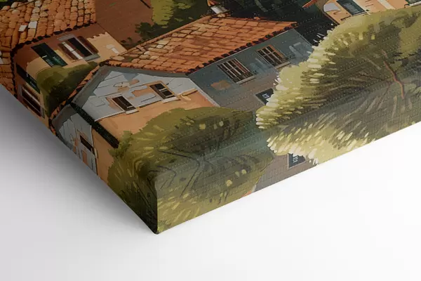 Cuadros Pueblo mediterráneo en una ladera, con casas de tonos cálidos y tejados de terracota. Nr s47951