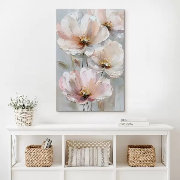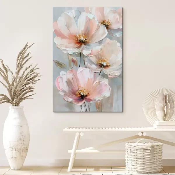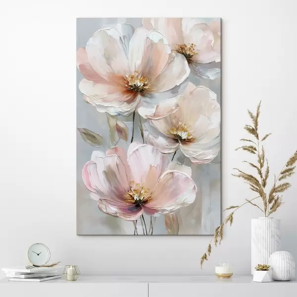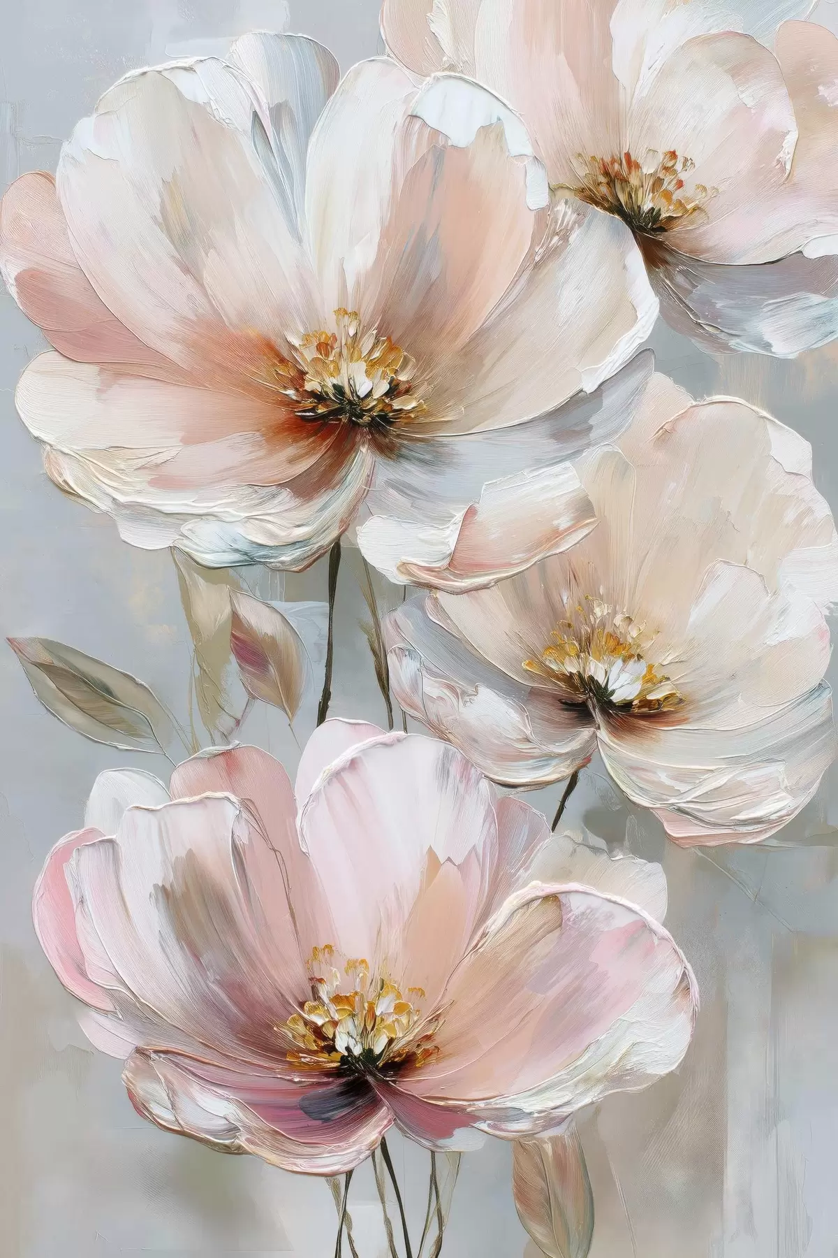 Cuadros Flores blancas y rosadas con pinceladas expresivas al estilo de una pintura al óleo. Nr s47962