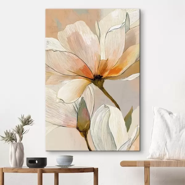 Cuadros Composición floral en tonos melocotón y azul Nr s47969