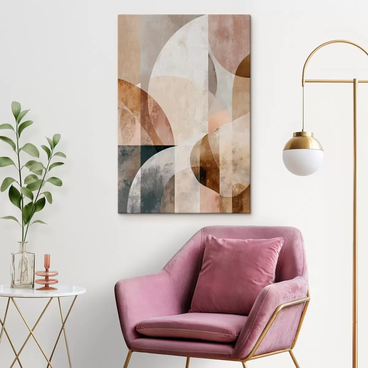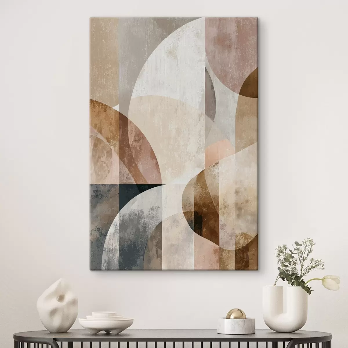 Cuadros Composición moderna con formas circulares y trazos verticales. Nr s47980