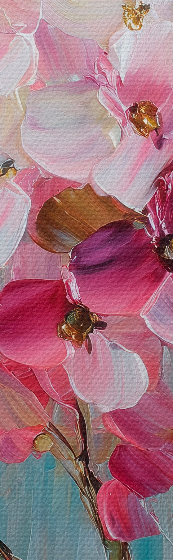 Hay tres tipos de material disponibles para pedidos: Lienzo Económico - material denso y duradero para impresión digital, idéntico al lienzo de pintor, superficie impermeable, reproducción realista de los detalles, material de grano medio. Lienzo Premium - la textura se asemeja a la de un lienzo de pintor (pequeños hilos entrelazados). Reproducción suave y detallada de la imagen sobre una superficie mate. Eco-Premium - tejido 100% algodón de alta calidad. Gracias a las fibras naturales de algodón, el material es duradero y resistente al desgaste. Excelente reproducción del color y el detalle.