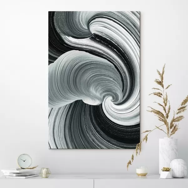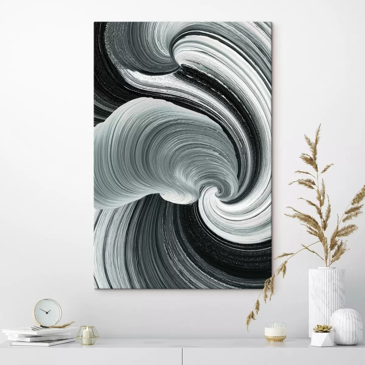 murales de pared Energía del movimiento: abstracto en blanco y negro al estilo de la pintura al óleo. s47990