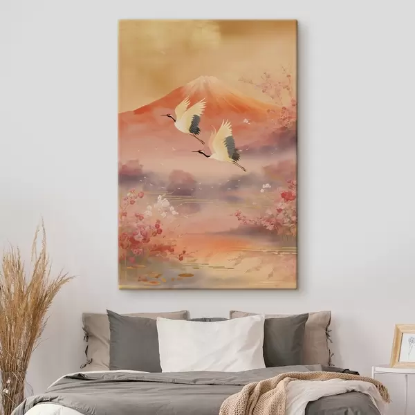 Cuadros Motivo tradicional oriental con flores de cerezo y grullas. Nr s47991