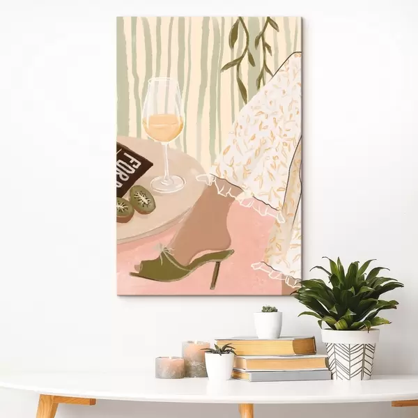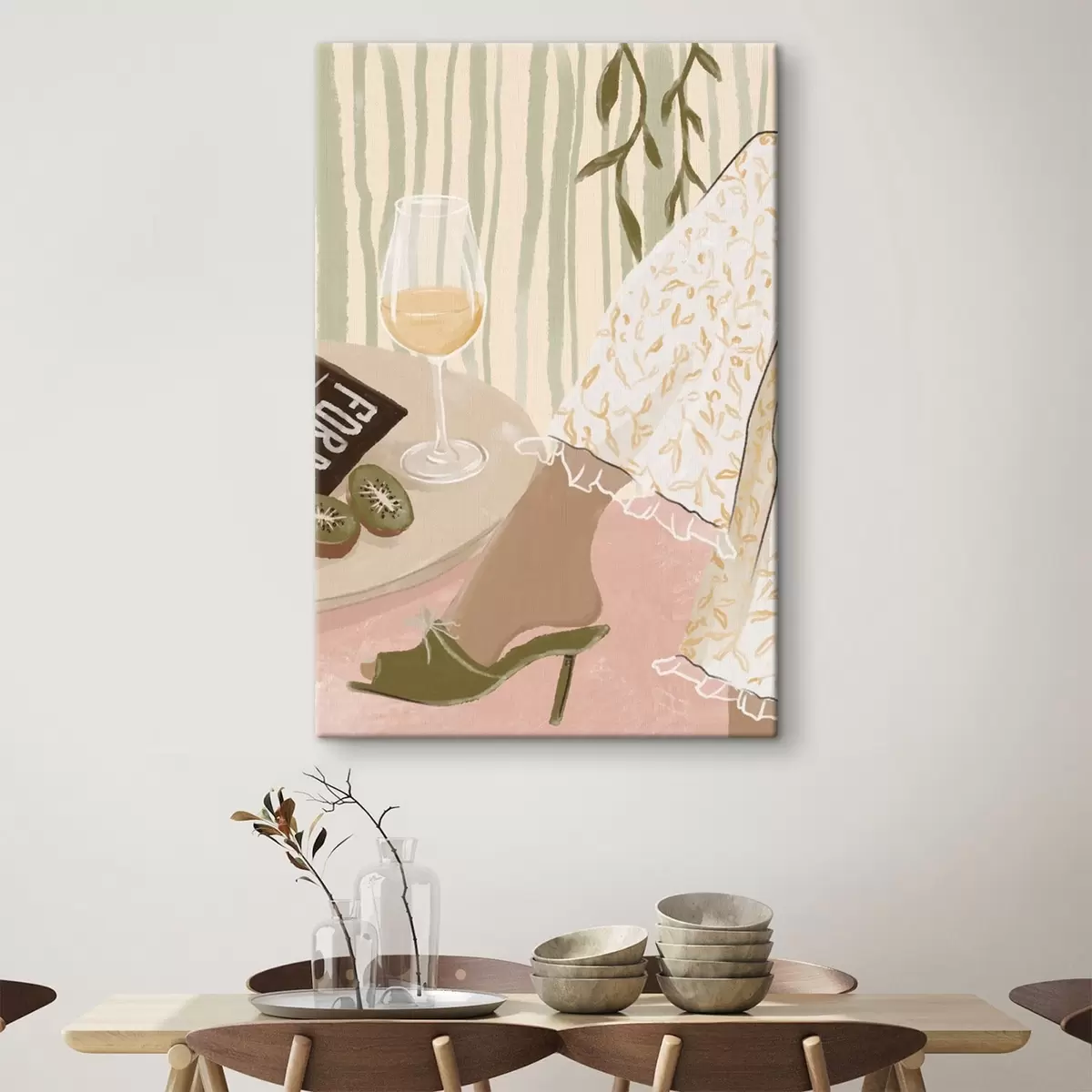 Cuadros Mesa con copa de vino y kiwi junto al vestido Nr s48021