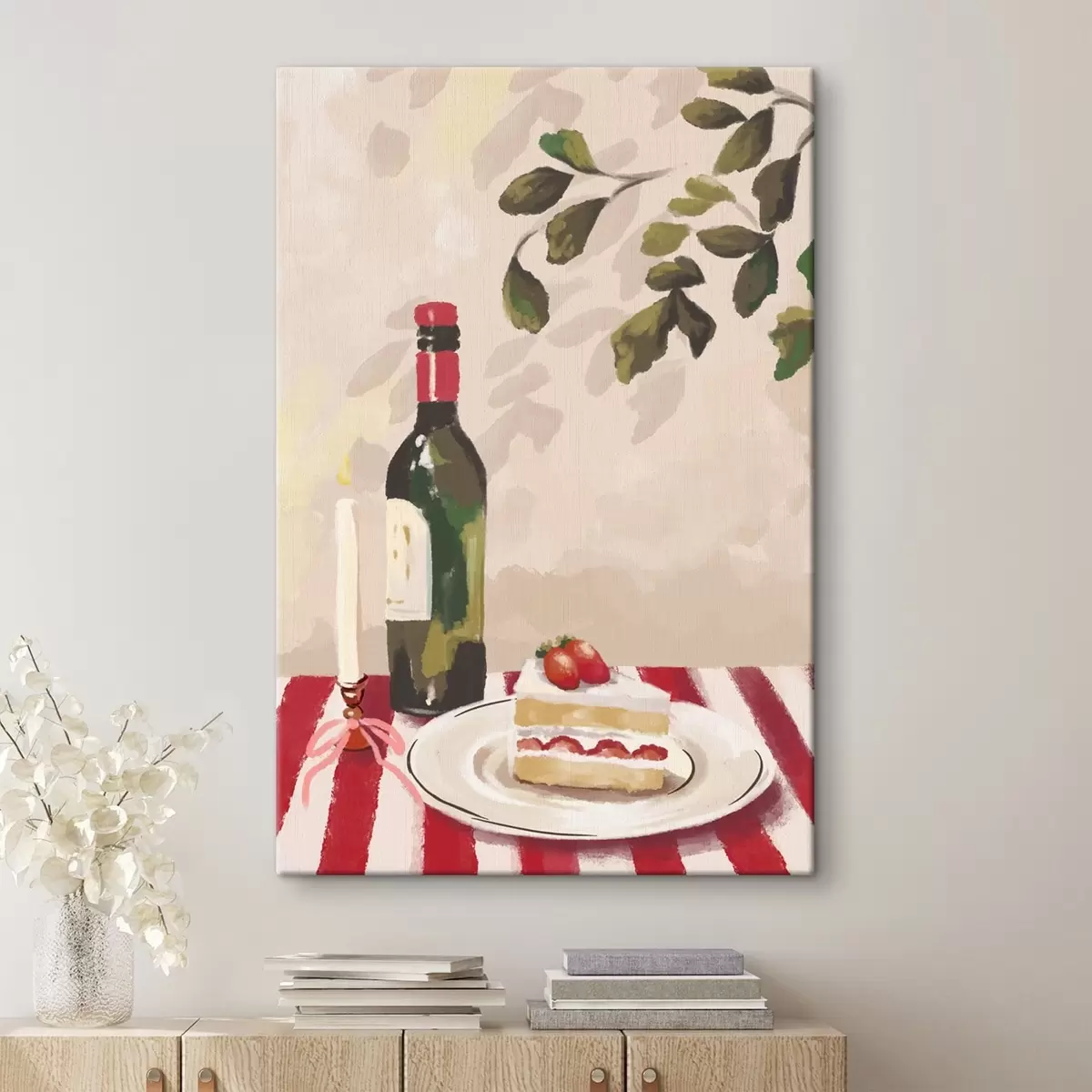 murales de pared Naturaleza muerta con vino, vela y pastel s48024