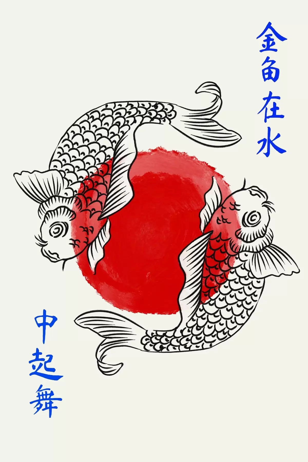 Cuadros Dos peces decorativos alrededor de un círculo rojo Nr s48033