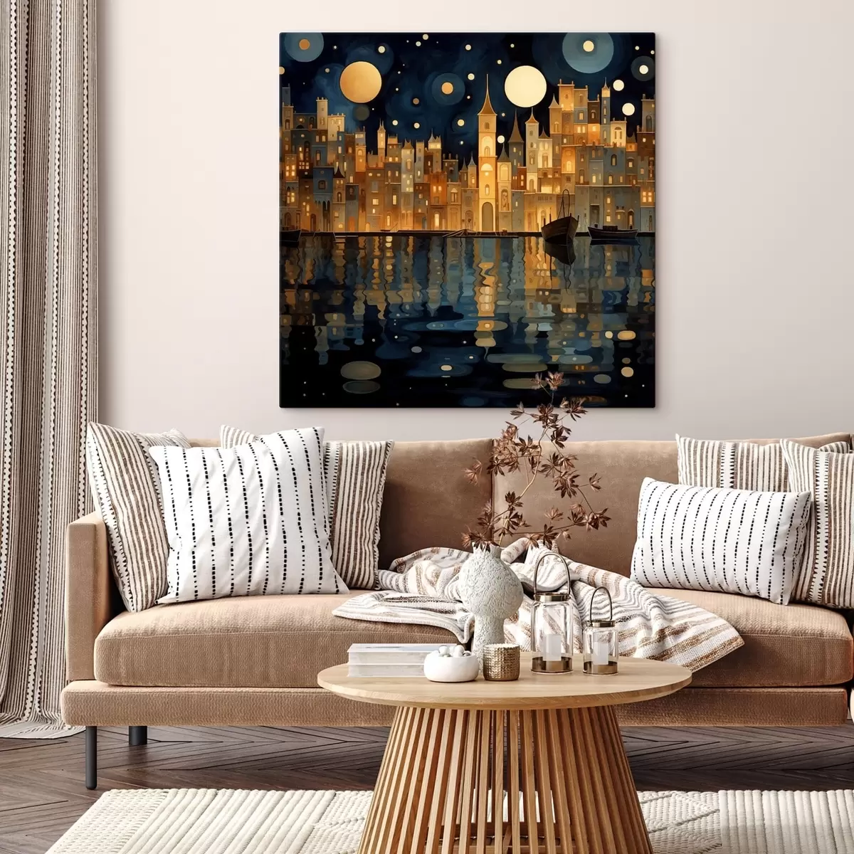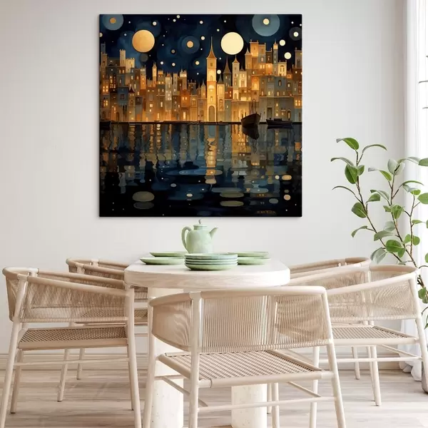 Cuadros ciudad nocturna caprichosa junto al agua Nr s48063