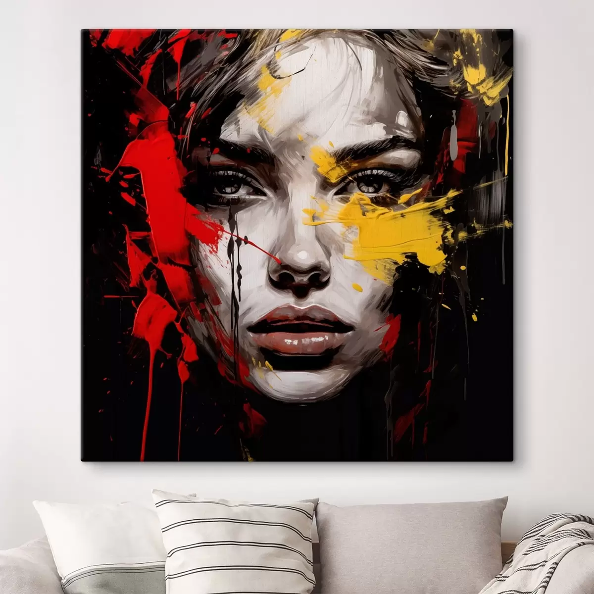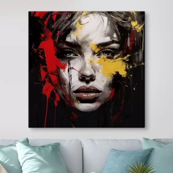 Cuadros Retrato de mujer con trazos rojos y amarillos Nr s48089