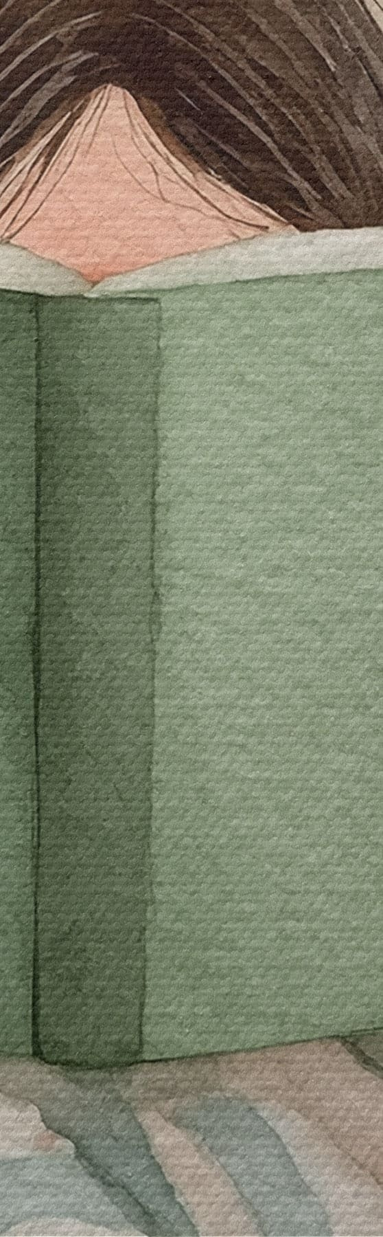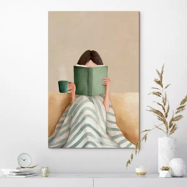 Cuadros Ilustración en acuarela suave de una mujer sentada en un sofá leyendo un libro. Nr s48114