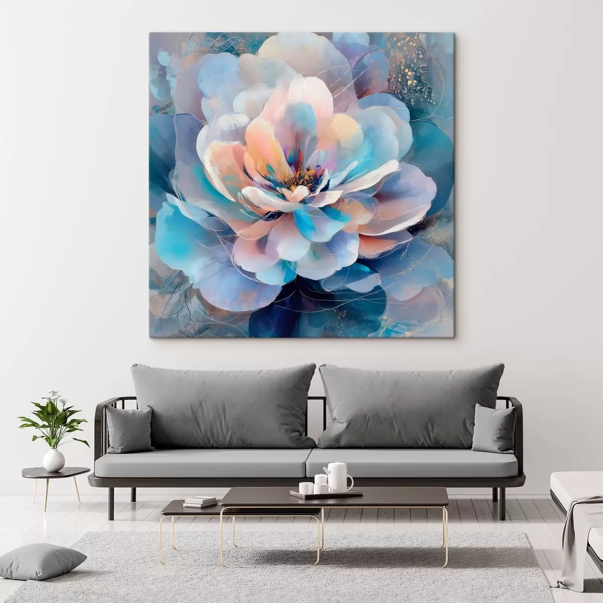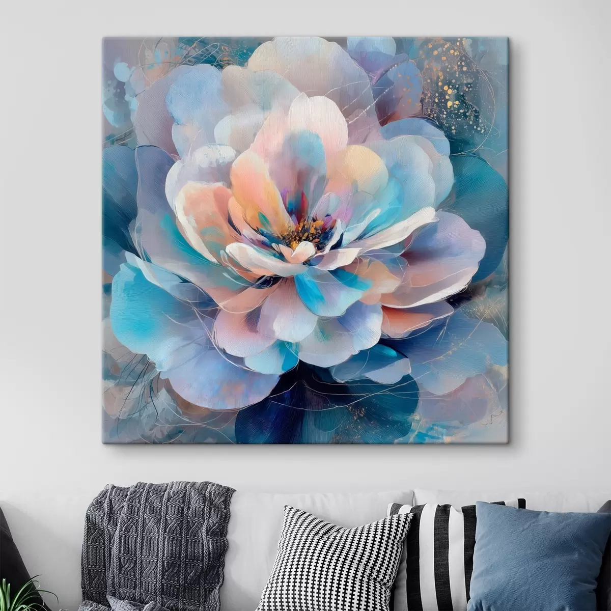 Cuadros Flor abstracta en tonos rosas y azules, en estilo pictórico contemporáneo Nr s48185
