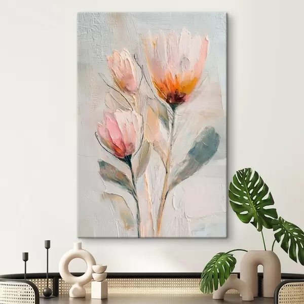 murales de pared Ramo de flores de protea con efecto de pinceladas gruesas s48206