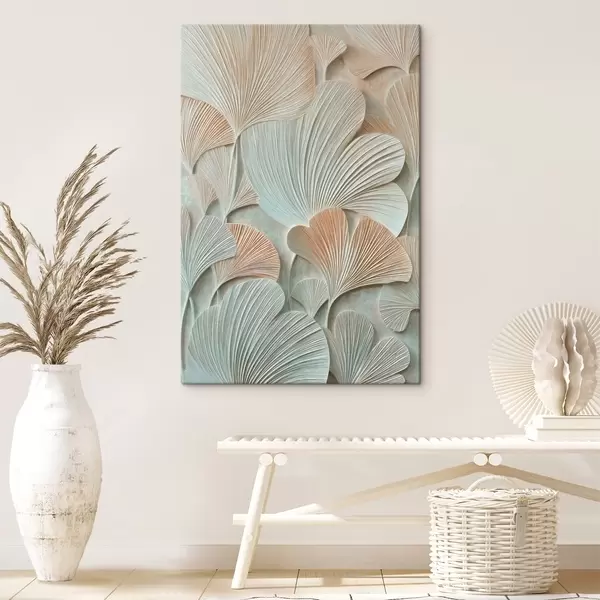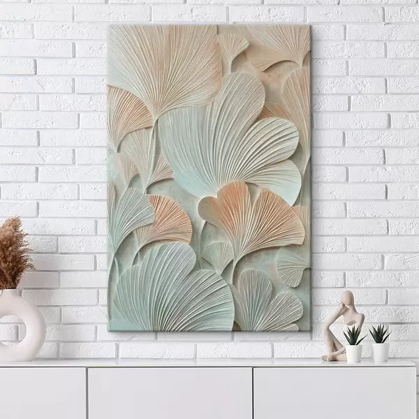 Cuadros Hojas de ginkgo biloba estilizadas con textura volumétrica en tonos pastel Nr s48209