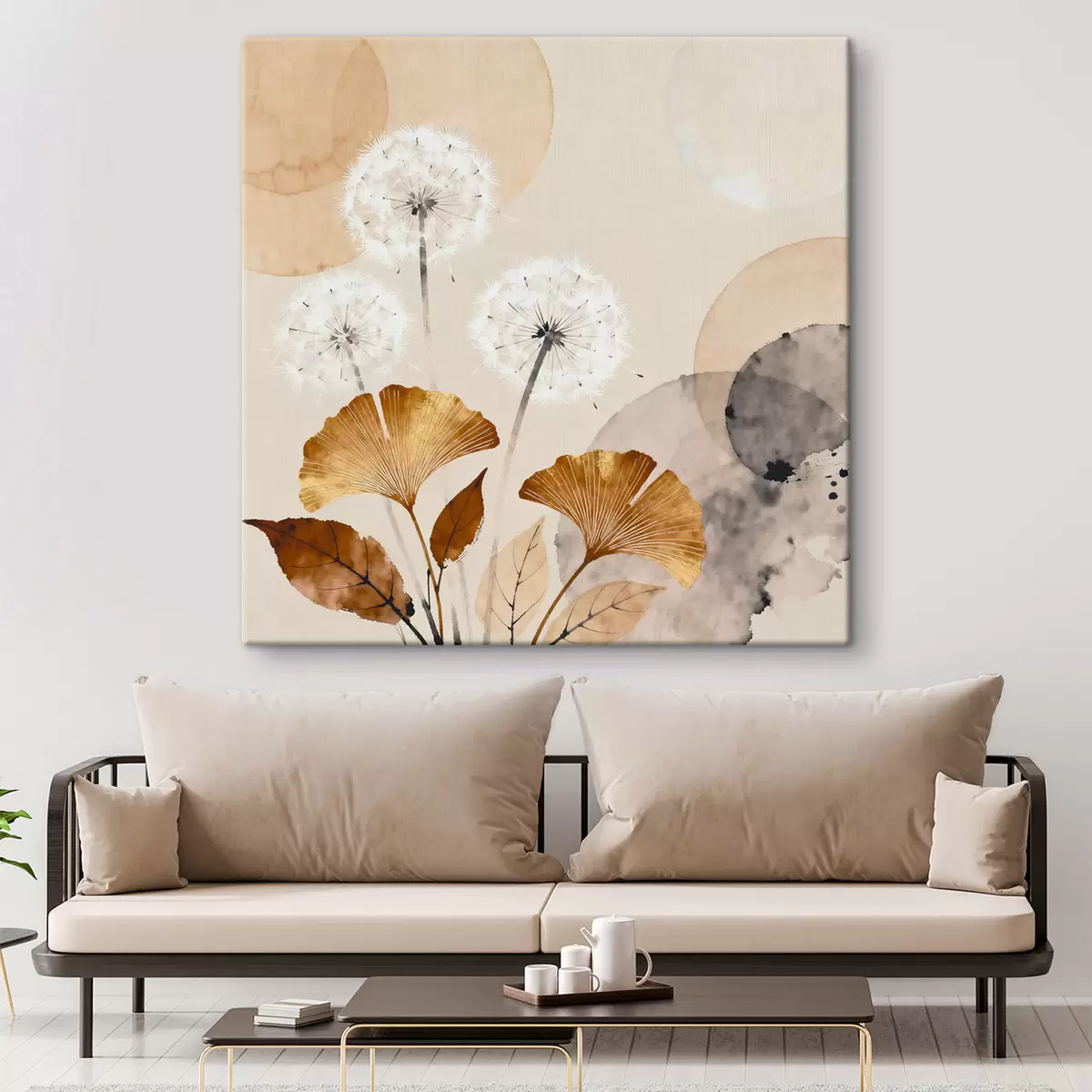 Cuadros Dientes de león y hojas de ginkgo en estilo abstracto Nr s48279