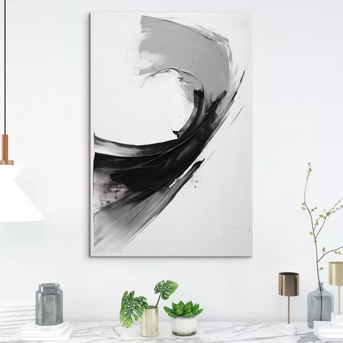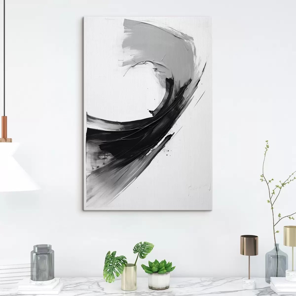 Cuadros Pincelada abstracta en negro sobre fondo blanco Nr s48326