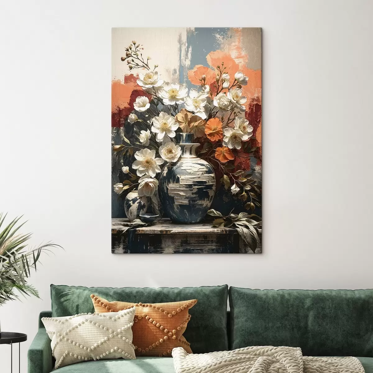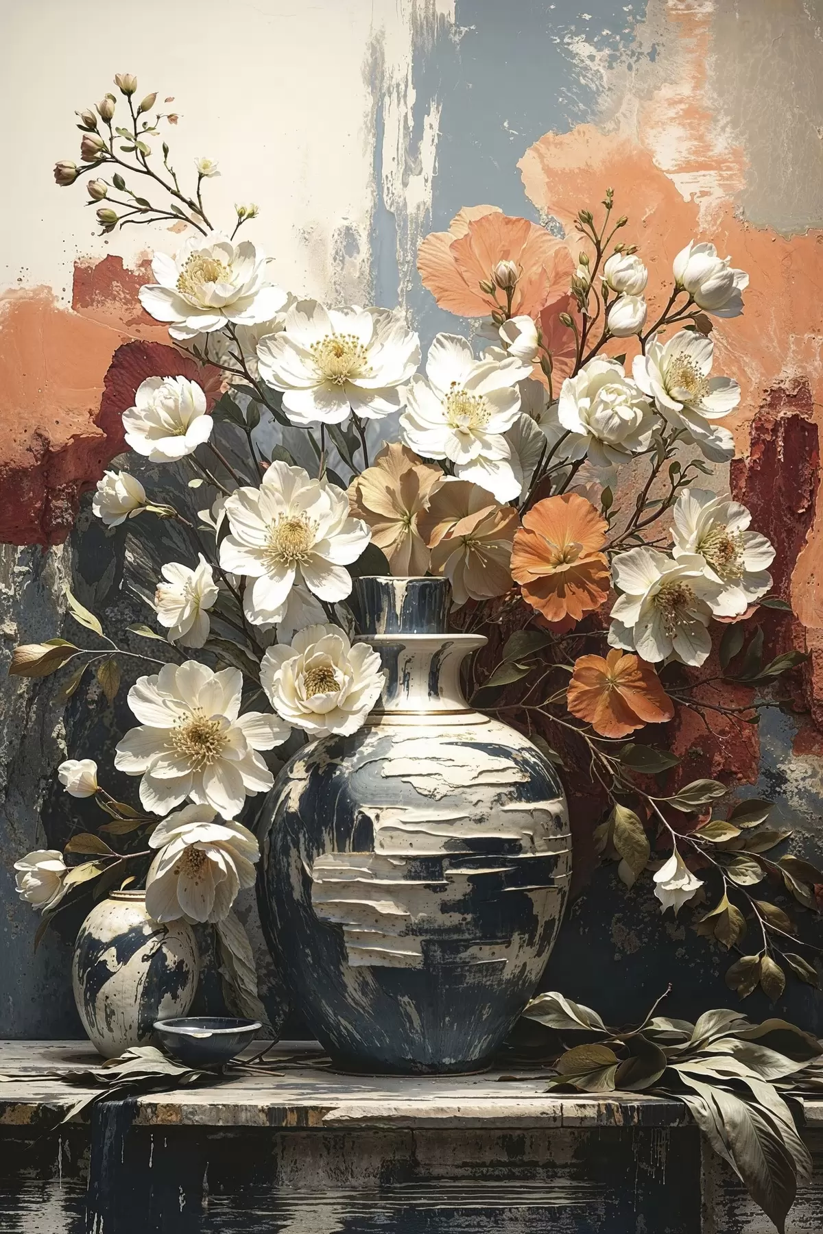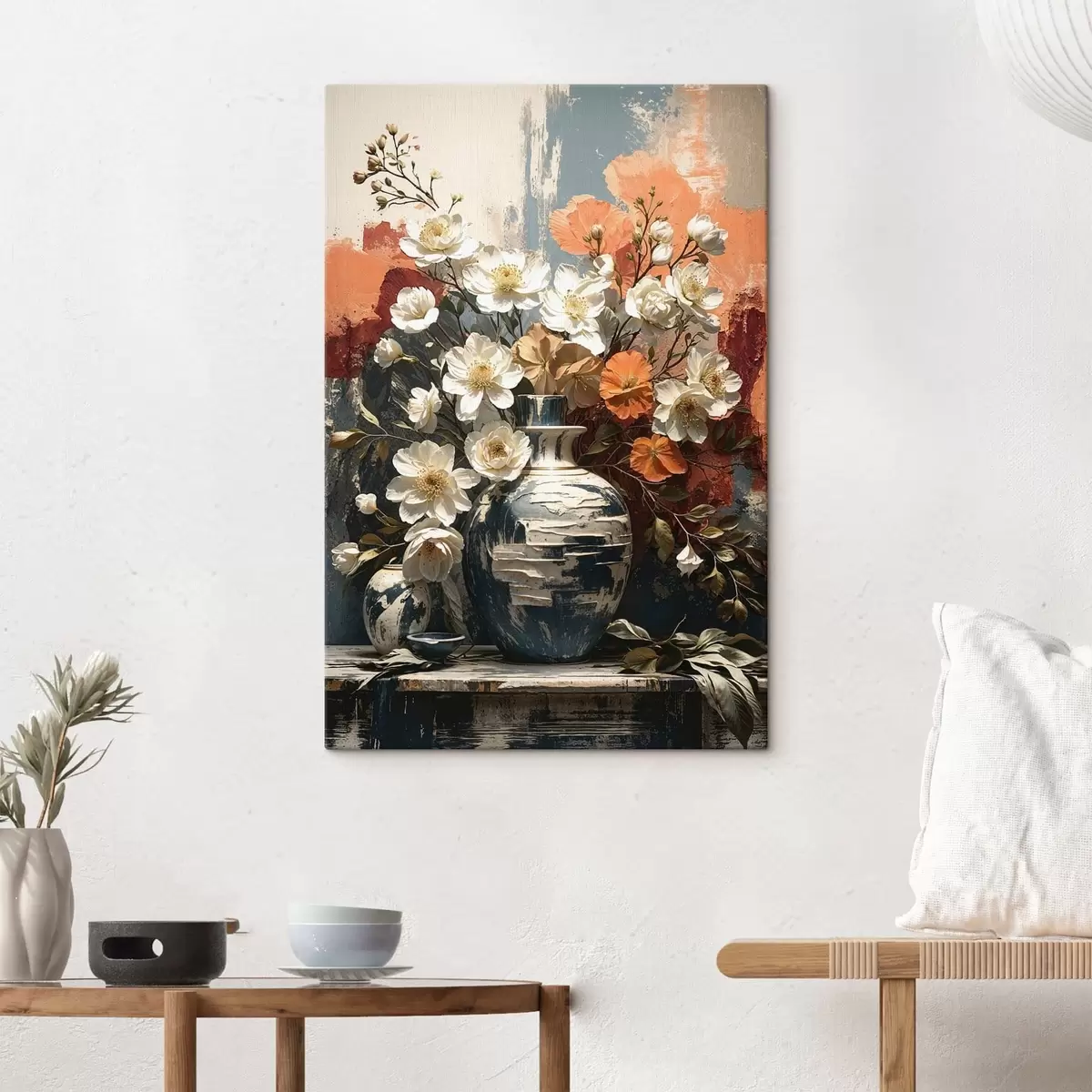 Cuadros Flores en jarrones frente a una pared con textura Nr s48360