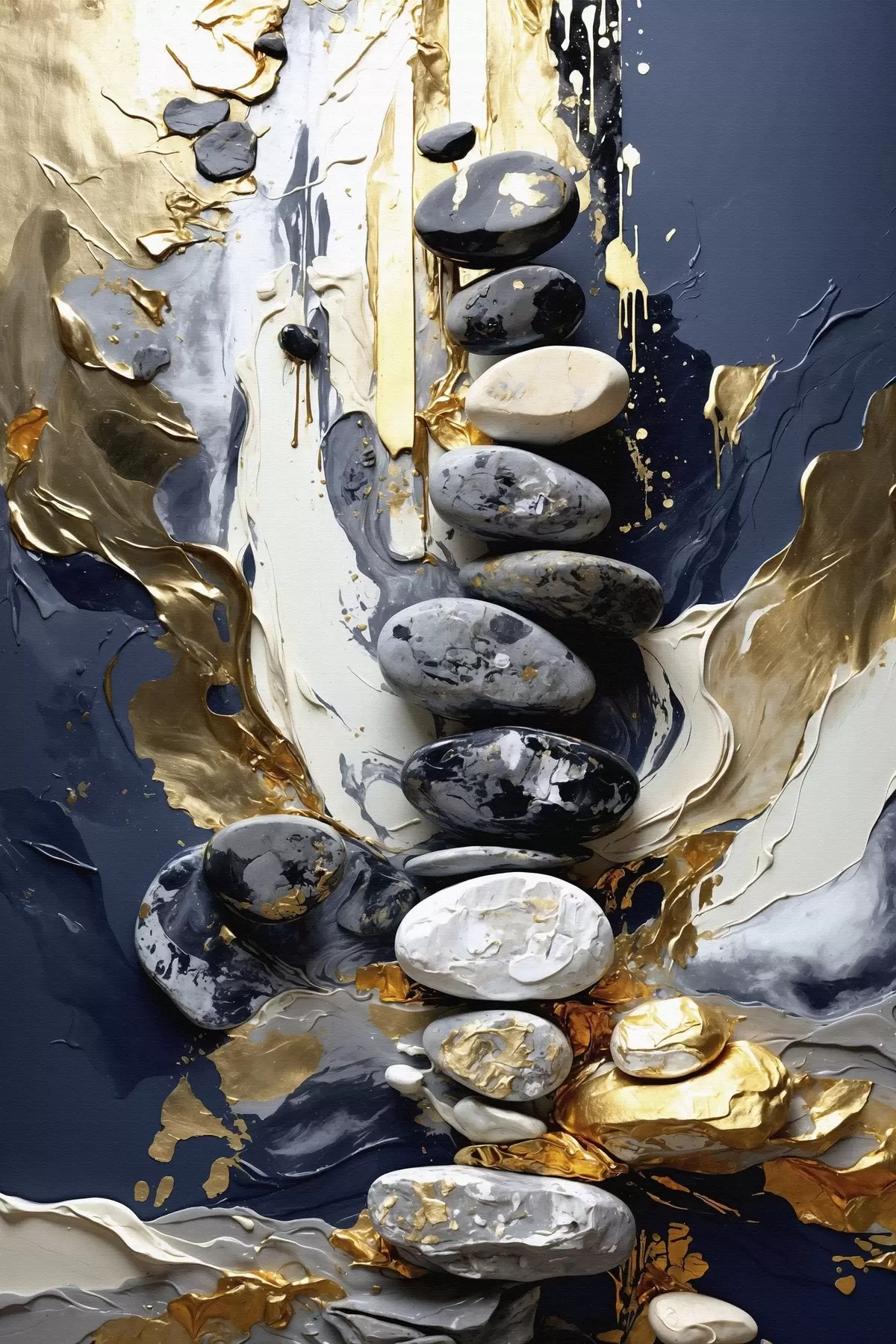 Cuadros Composición abstracta con piedras y trazos texturados Nr s48362