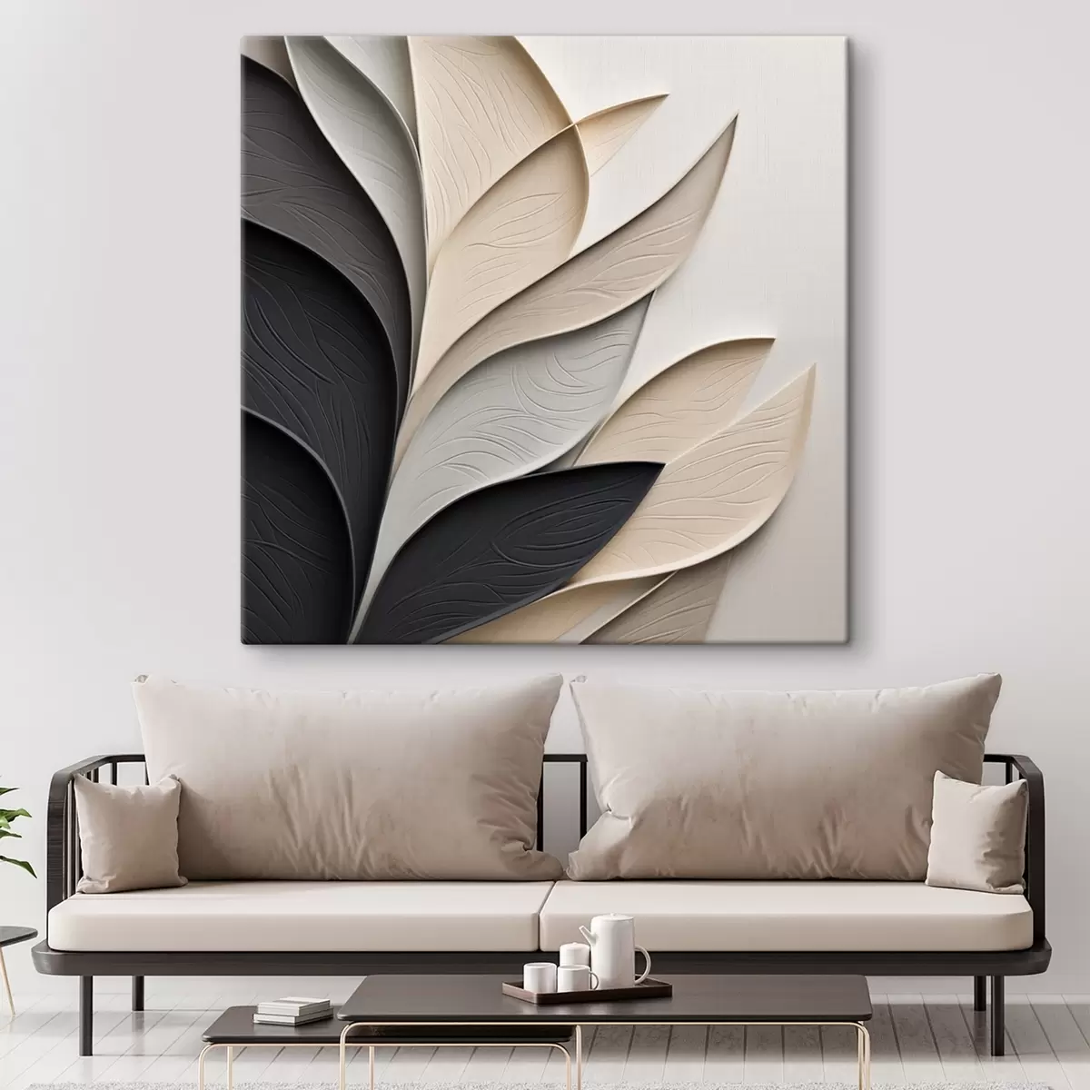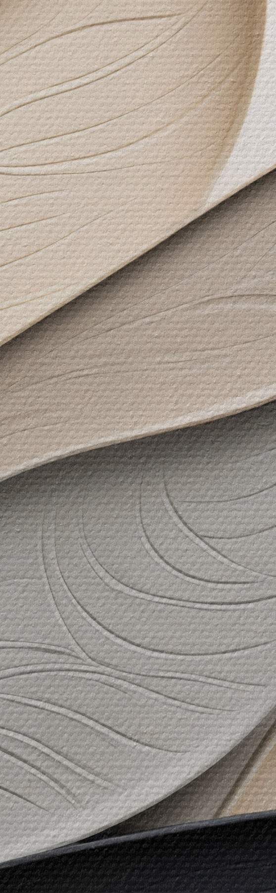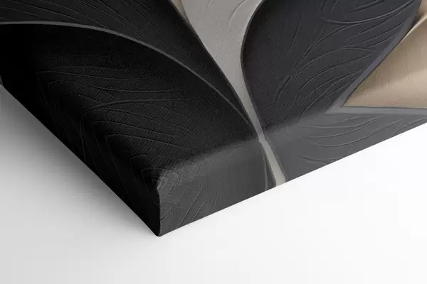 Cuadros Composición abstracta de hojas superpuestas, formas curvas en negro, blanco y beige, arte texturizado Nr s48382