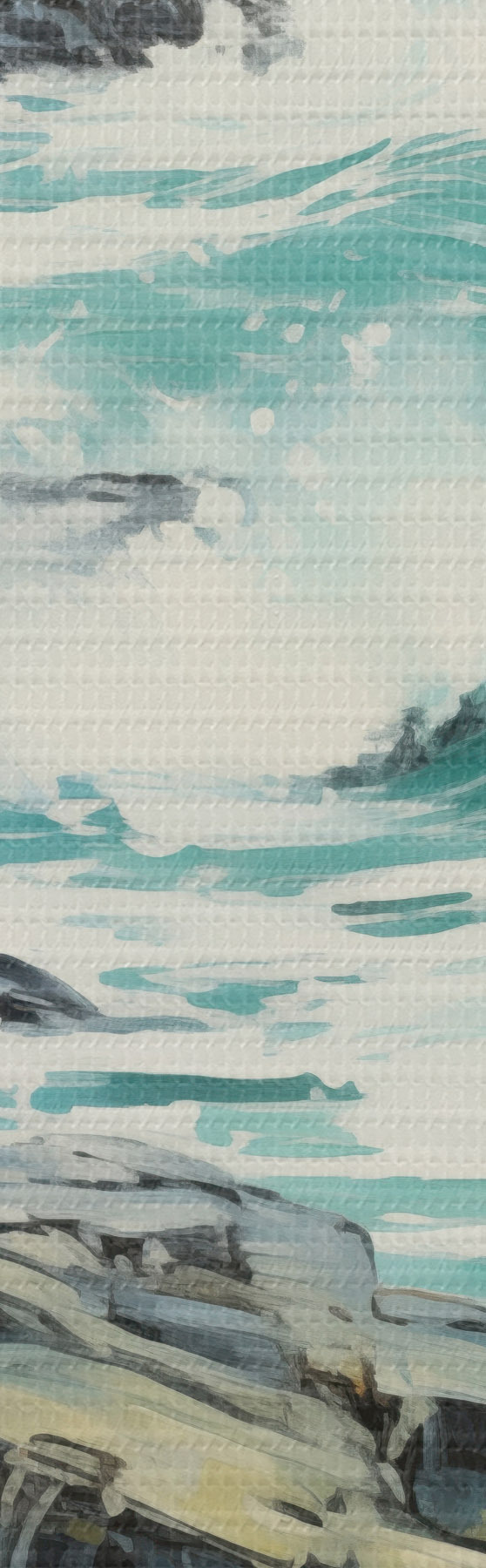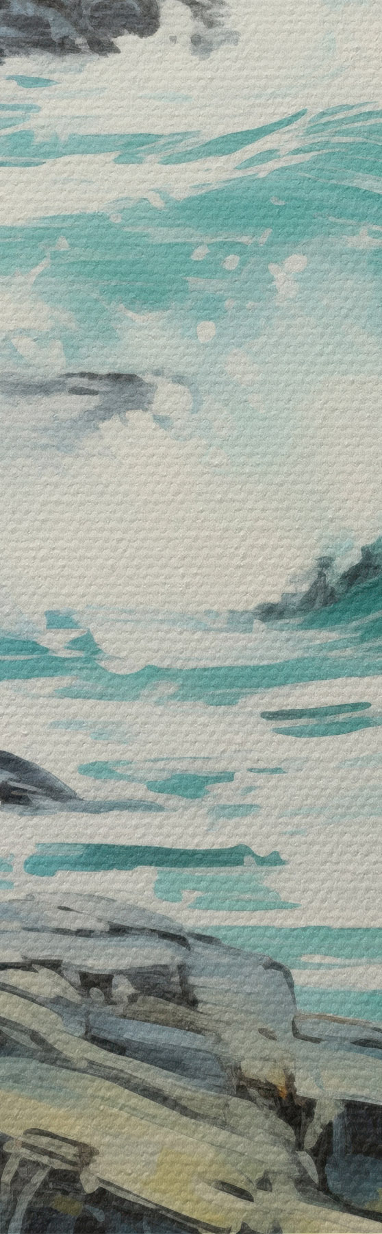 murales de pared Un paisaje de costa rocosa con olas bajo un cielo nublado, estilo pictórico s48388