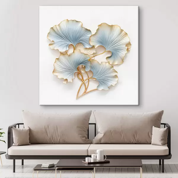 Cuadros Hojas de ginkgo estilizadas con toques de azul y amarillo Nr s48397