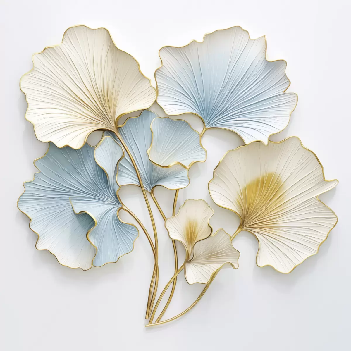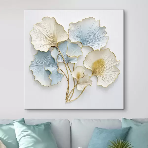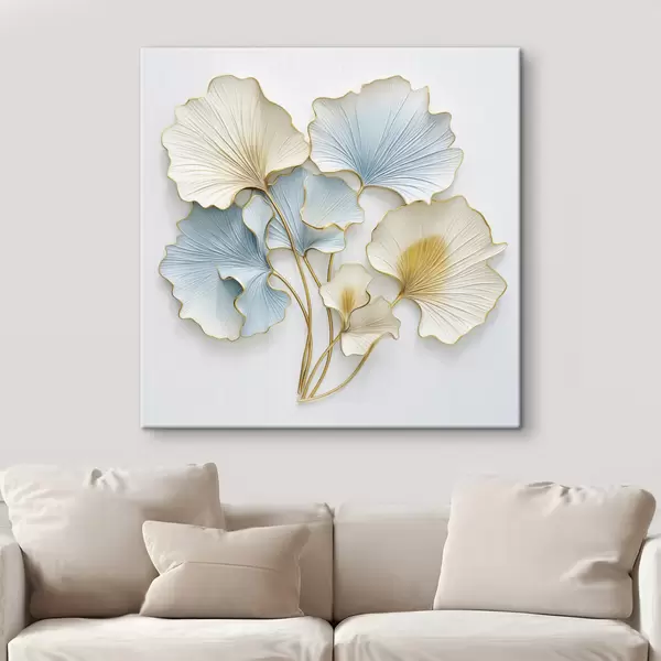 Cuadros Hojas de ginkgo estilizadas con toques de azul y amarillo Nr s48398