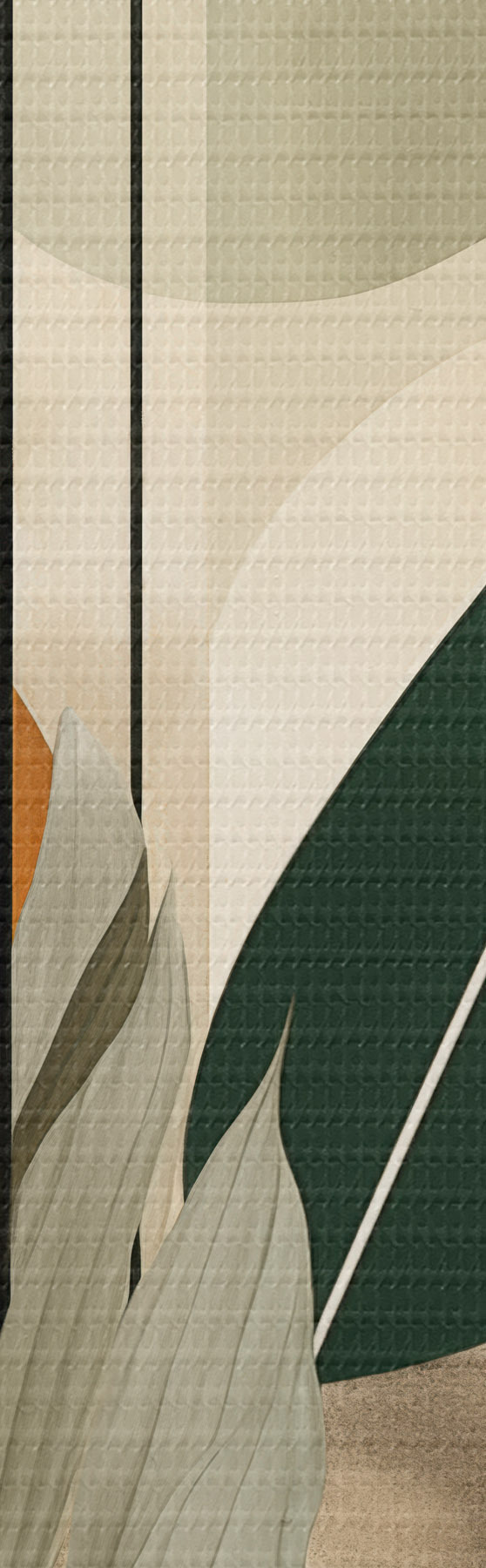 murales de pared Una planta de color verde oscuro con formas geométricas abstractas y texturas de acuarela en tonos beige y verde s48410