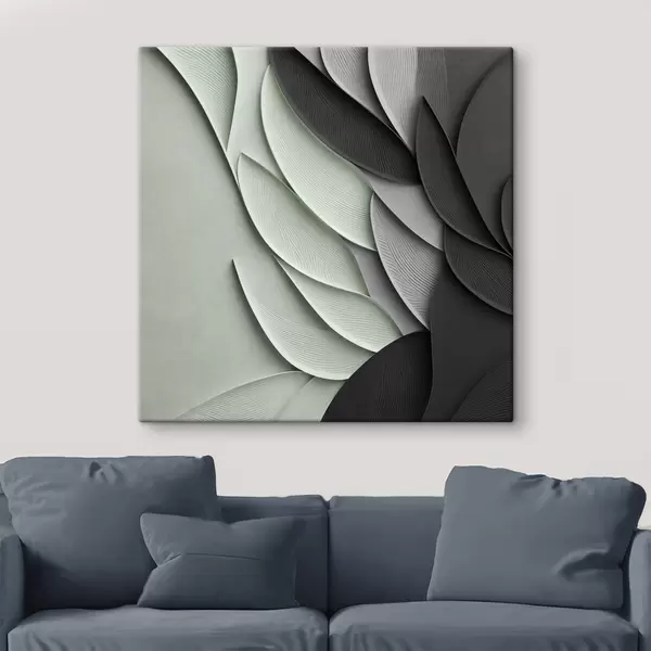 Cuadros Hojas estilizadas y abstractas en tonos grises, blancos y verdes apagados Nr s48412