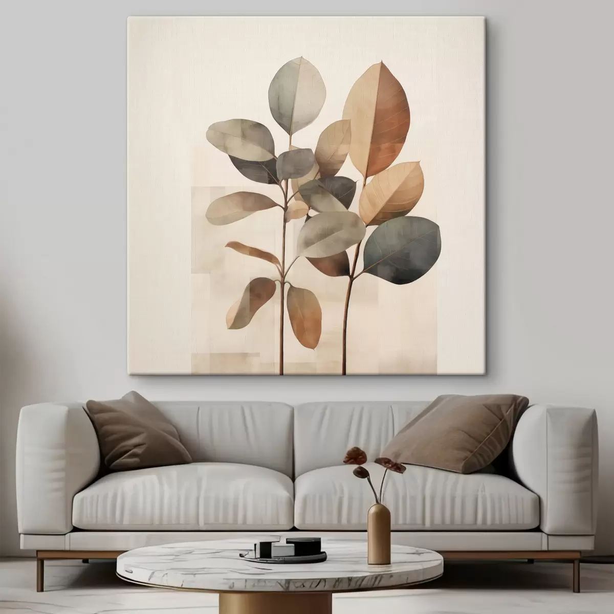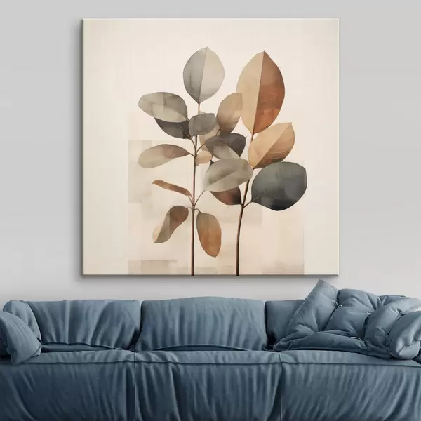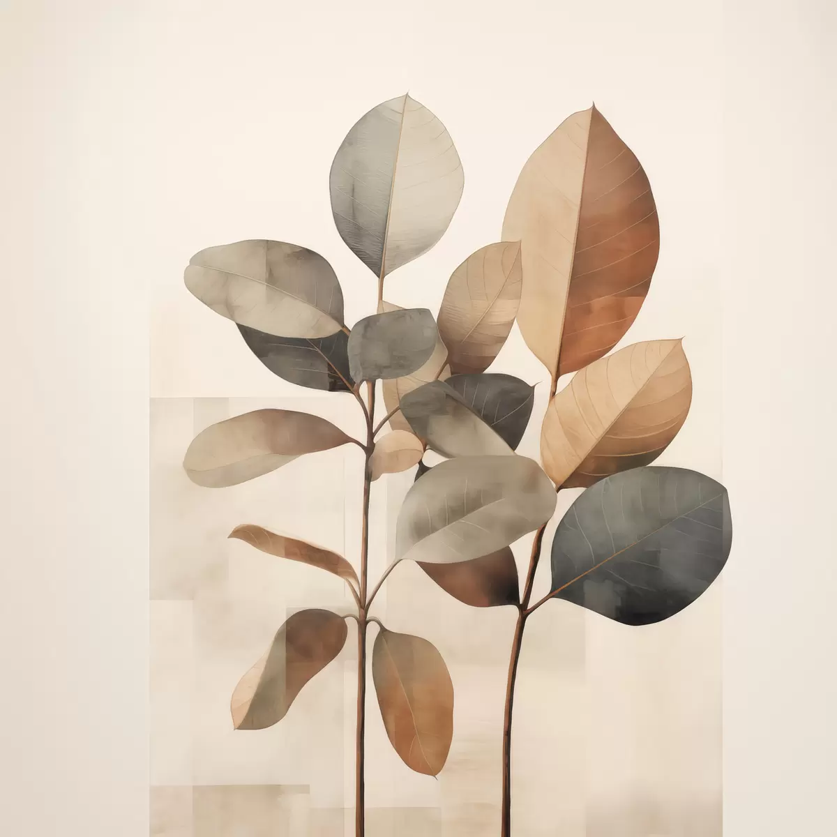 Cuadros Plantas altas con hojas ovaladas en tonos apagados y formas rectangulares abstractas Nr s48413